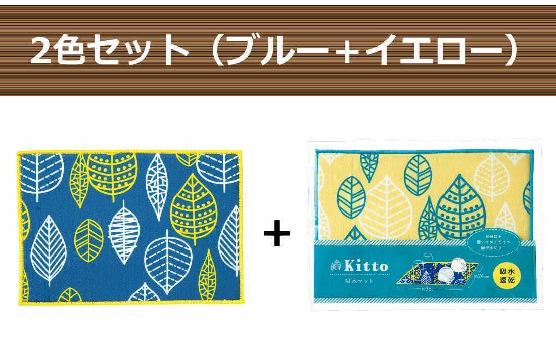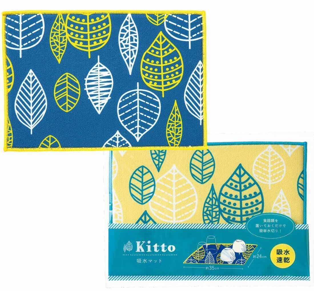【2色セット】キッチン用 吸水マット 水切りマット グラス 食器の水切り ディッシュマット 約35×24cm 葉っぱのかわいいデザイン 台所が華やか 吸水 速乾