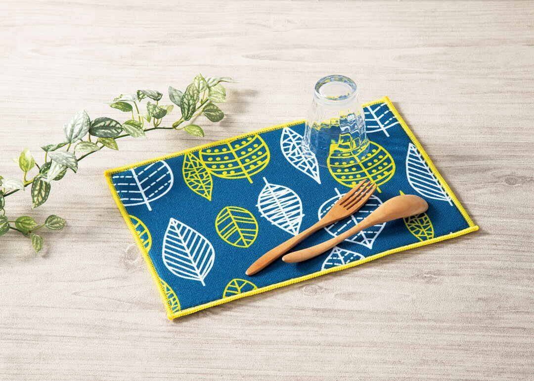 【2色セット】キッチン用 吸水マット 食器の水切り ディッシュマット 約35×24cm かわいいデザインで台所が華やかに 吸水 速乾 樹木モチーフの落ち着いたデザイン