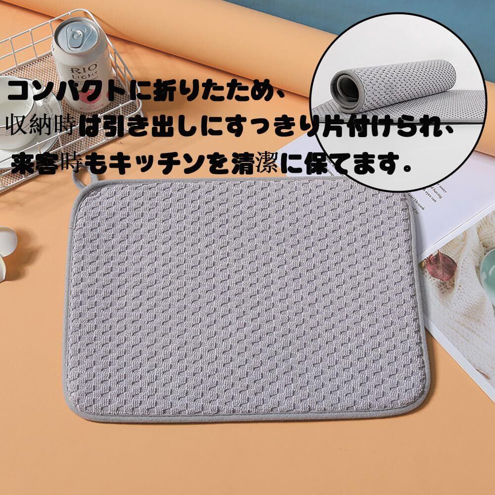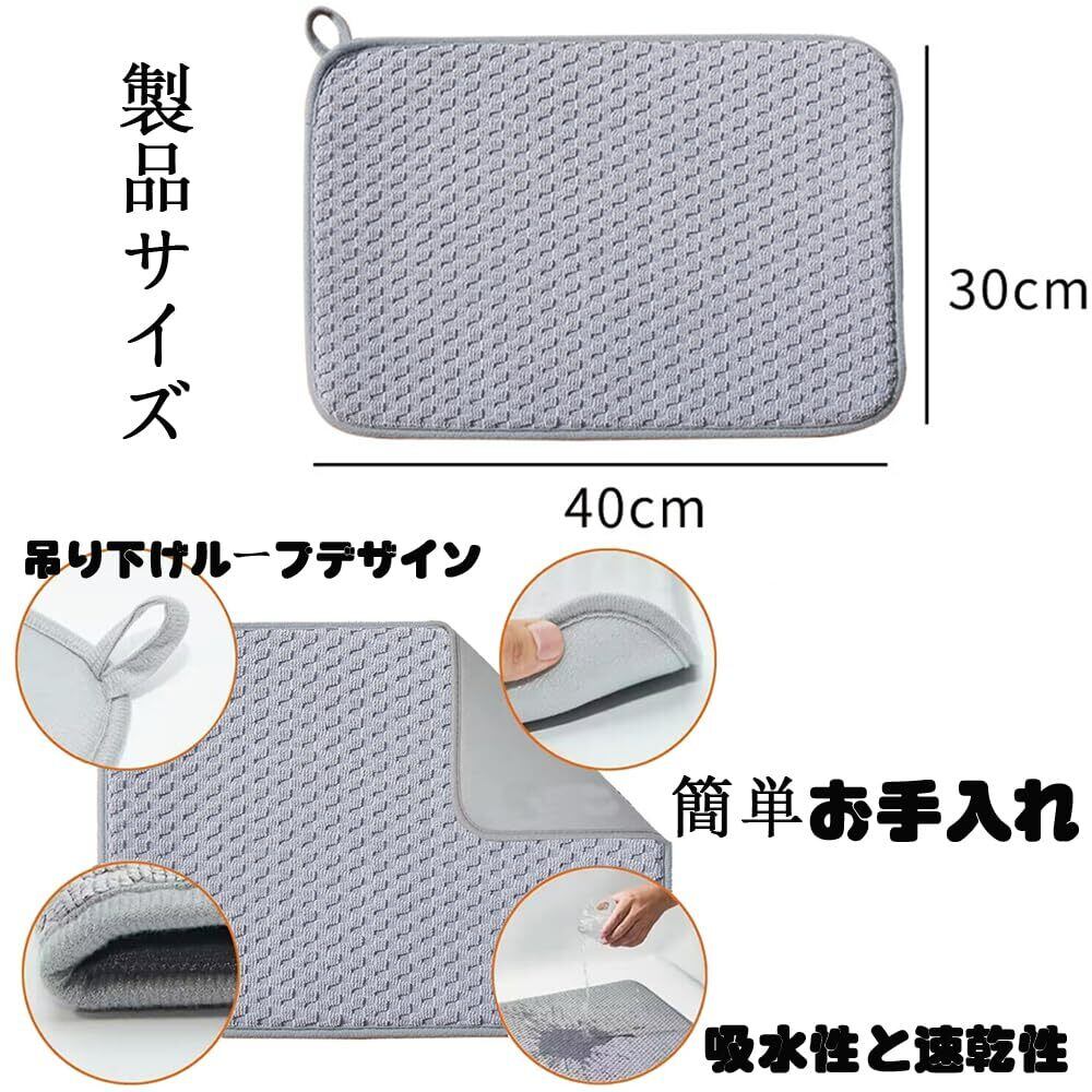 Dekori 水切りマット 速乾吸水マット2枚セット食器乾燥マット キッチン マイクロファイバー 保護シート簡単収納 ループ付き丸めて収納 食器 水切り洗濯可能 30x40cm