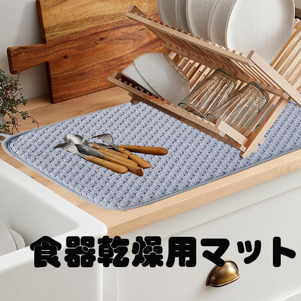 【吸水性抜群】厚手で食器だけでなくキッチン作業台の水ハネも素早く吸収し、速やかに乾燥します。キッチン食器乾燥機マットは、食器棚の下の滴をキャッチし、鍋、フライパン、食器、ガラス製品を直接排水マットの上に置き、または、洗浄後に果物を乾燥させることもできます。プレートマットやバーマットとして使用できます。