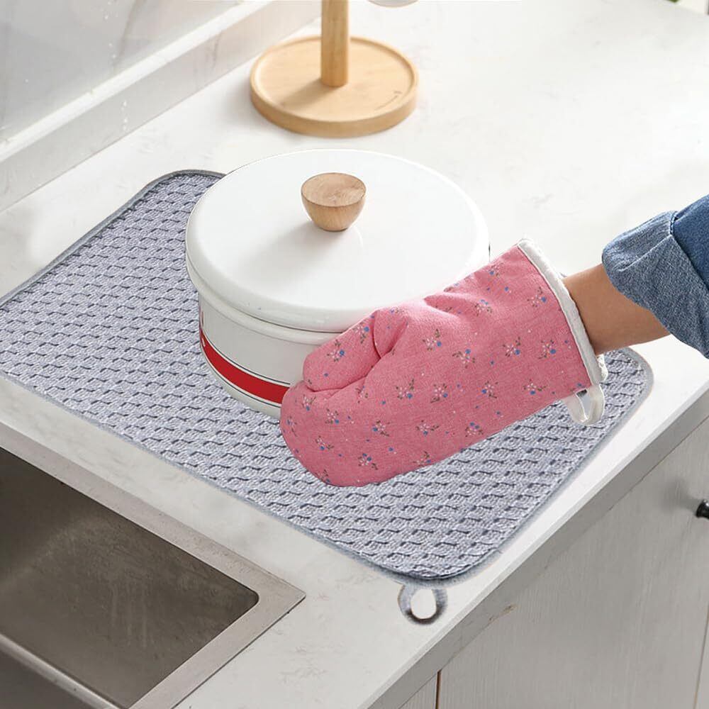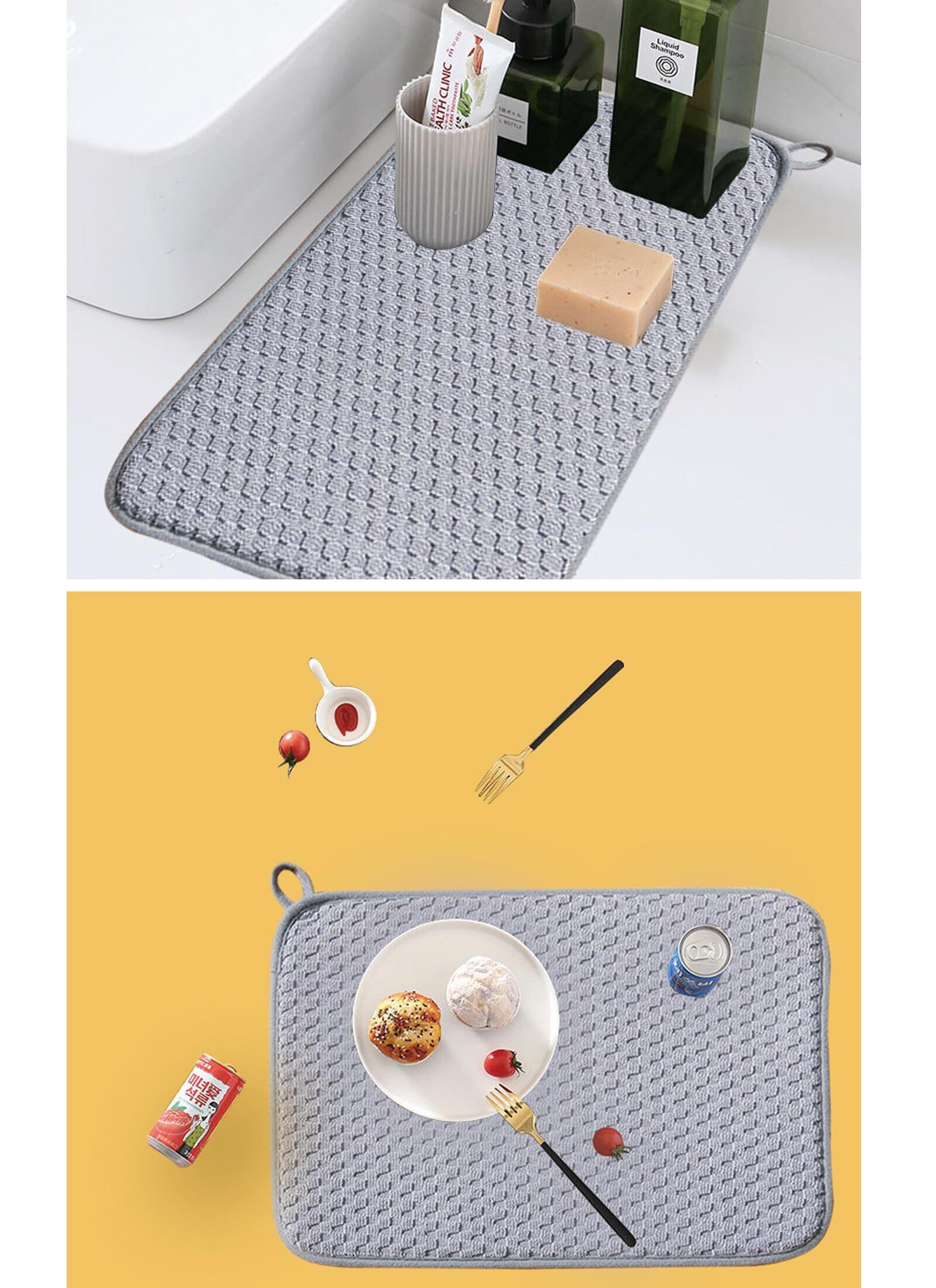 キッチン食器乾燥機マットは、食器棚の下の滴をキャッチし、鍋、フライパン、食器、ガラス製品を直接排水マットの上に置き、または、洗浄後に果物を乾燥させることもできます。プレートマットやバーマットとして使用できます。 当社のスタイリッシュなキッチンカウンターマットは、傷や傷からカウンターを保護しながら、最も貴重なガラス製品を安全かつサウンドに保ちます。 犬や猫のお椀の下の食器マットとしても使えます。