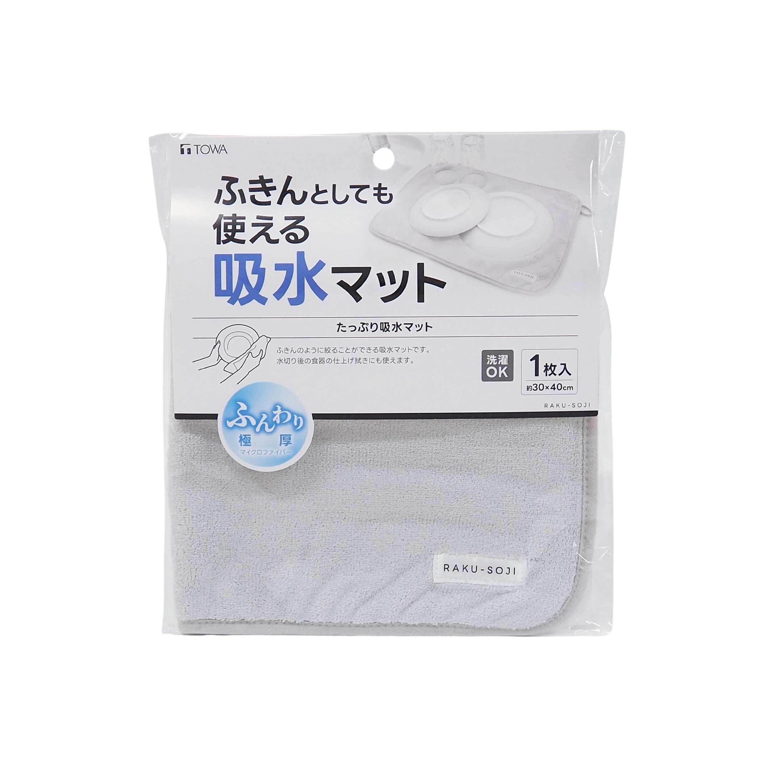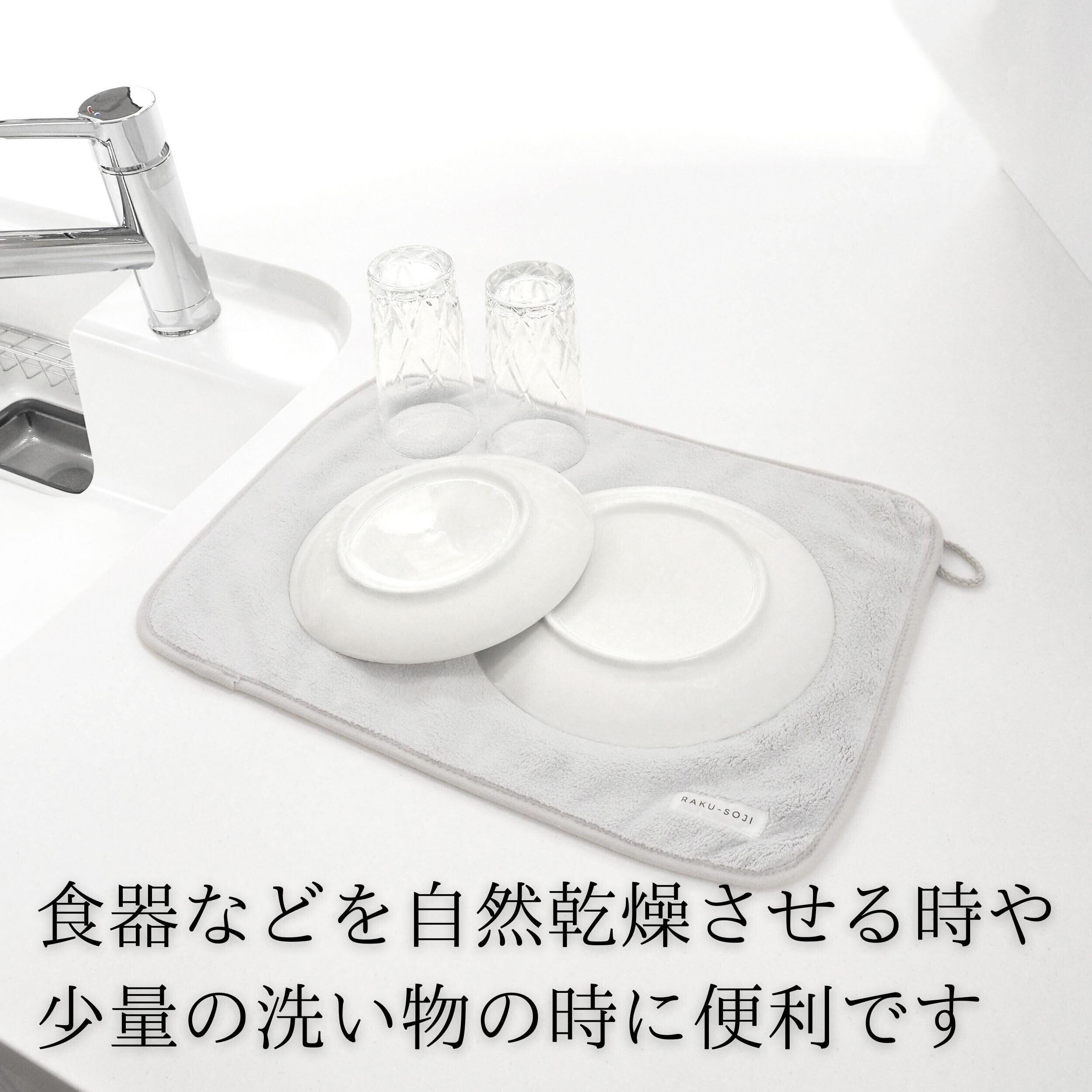 東和産業 RAKUSOJI キッチン 水切りマット 吸水マット 食器 極厚 厚手 マイクロファイバー 約30×40cm ふきんとしても使える 洗濯OK グレー 1枚入