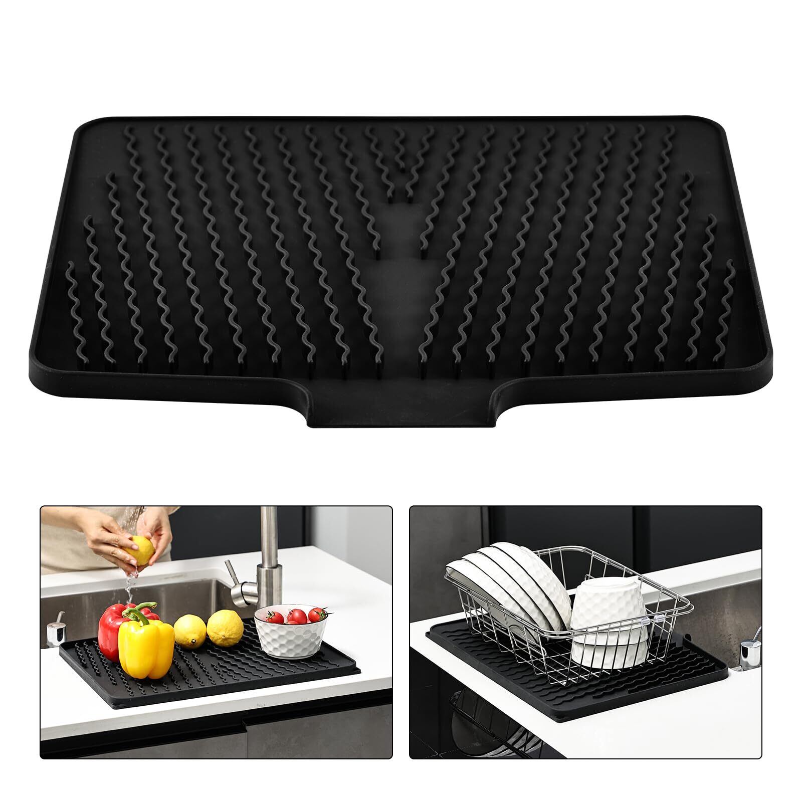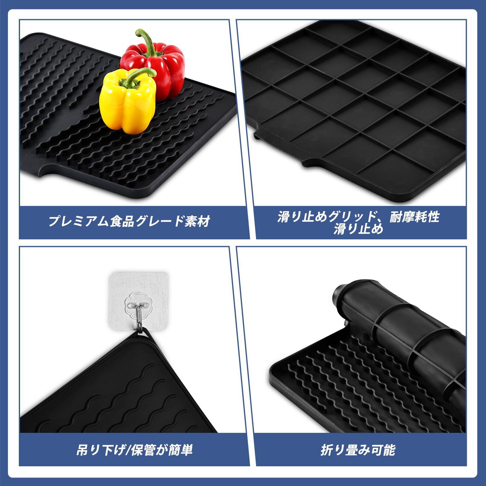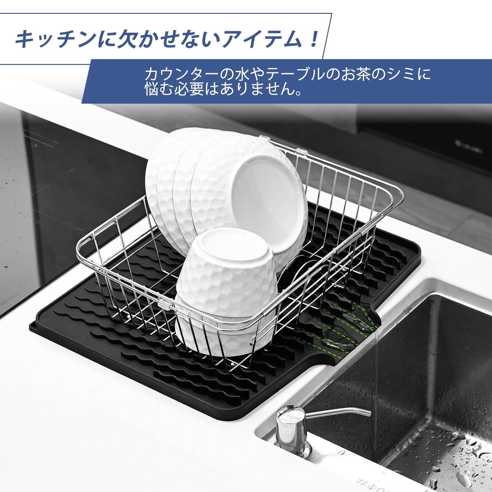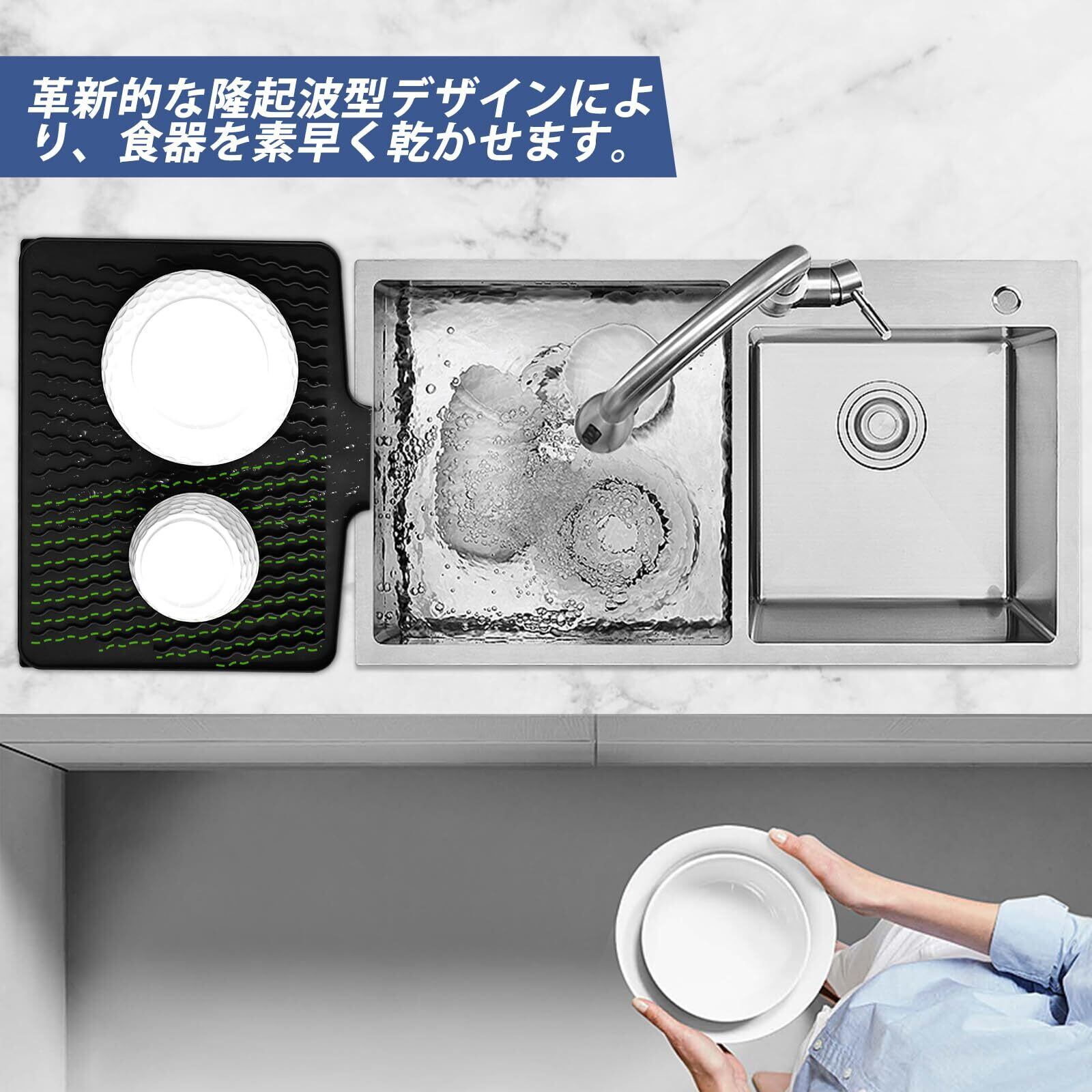 【幅広い応用】高品質のシリコンマットは耐高温性の特徴があり、シンクマットとして利用に限ず、高温の鍋・お湯も置けます、壊れやすいガラス製品とステンレス鋼または陶製シンクのための良いシンク保護。キッチンカウンターや食卓の保護としても素晴らしいグッズとなります。調理台表面保護、雑コレクターとしても最適。
