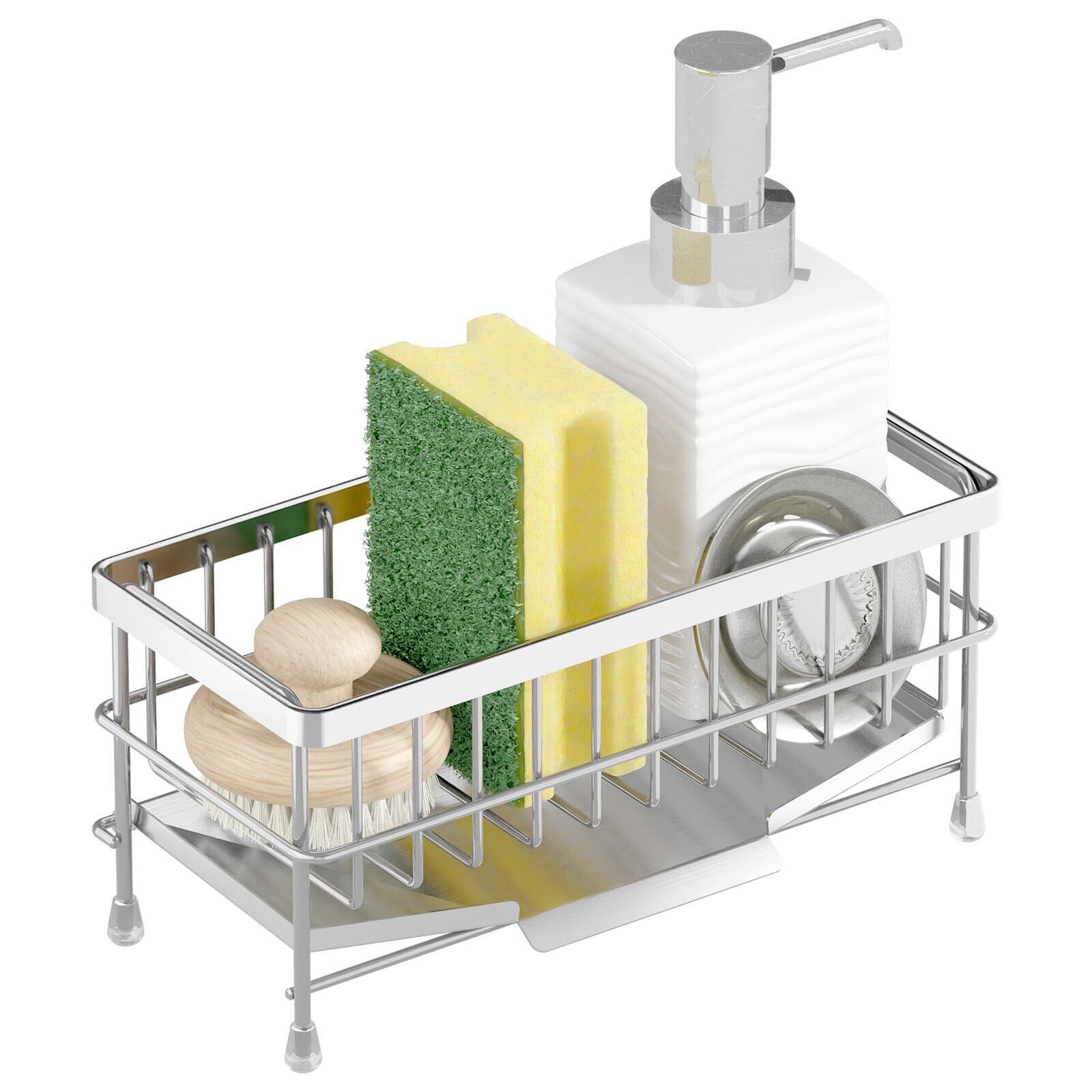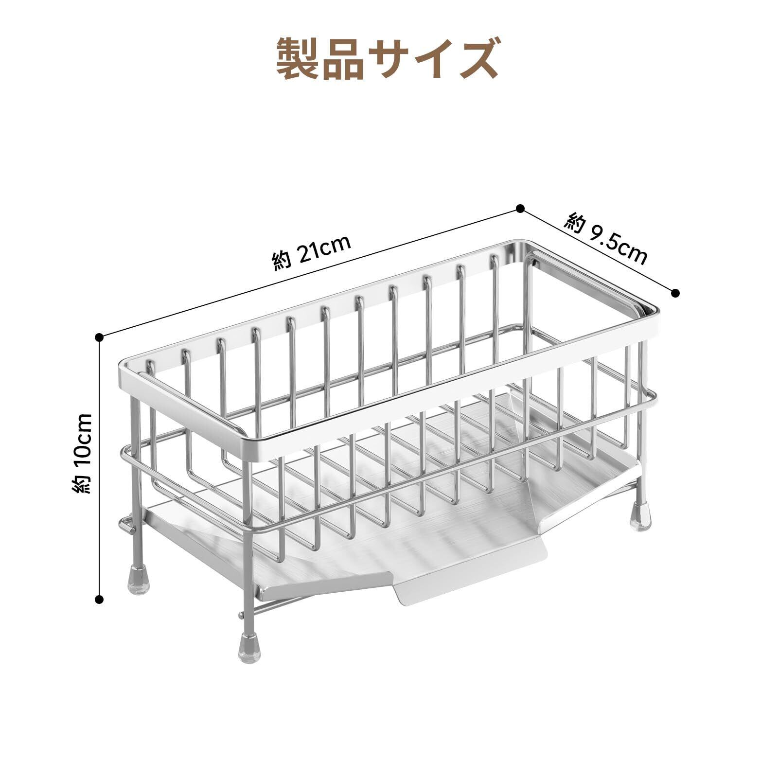 スポンジ置き スポンジホルダー 18-8 ステンレス製 防錆 水切り ラック シンク横収納 キッチン 洗剤置き たわし入れ 取り外し可能トレー 滑り止め付き 台所 洗面所収納 約W21XD10XH9.5cm シルバー