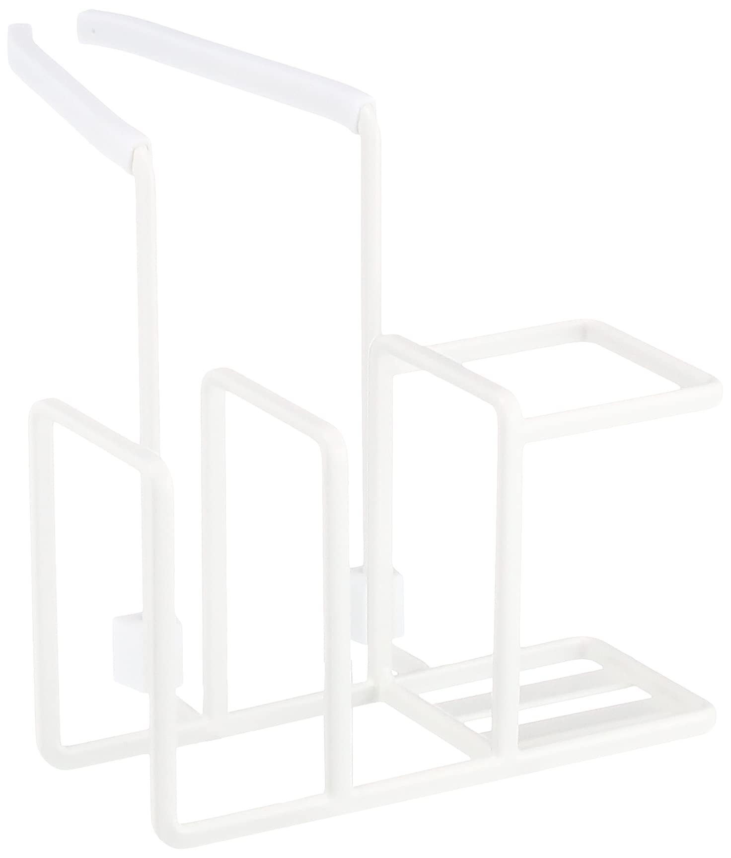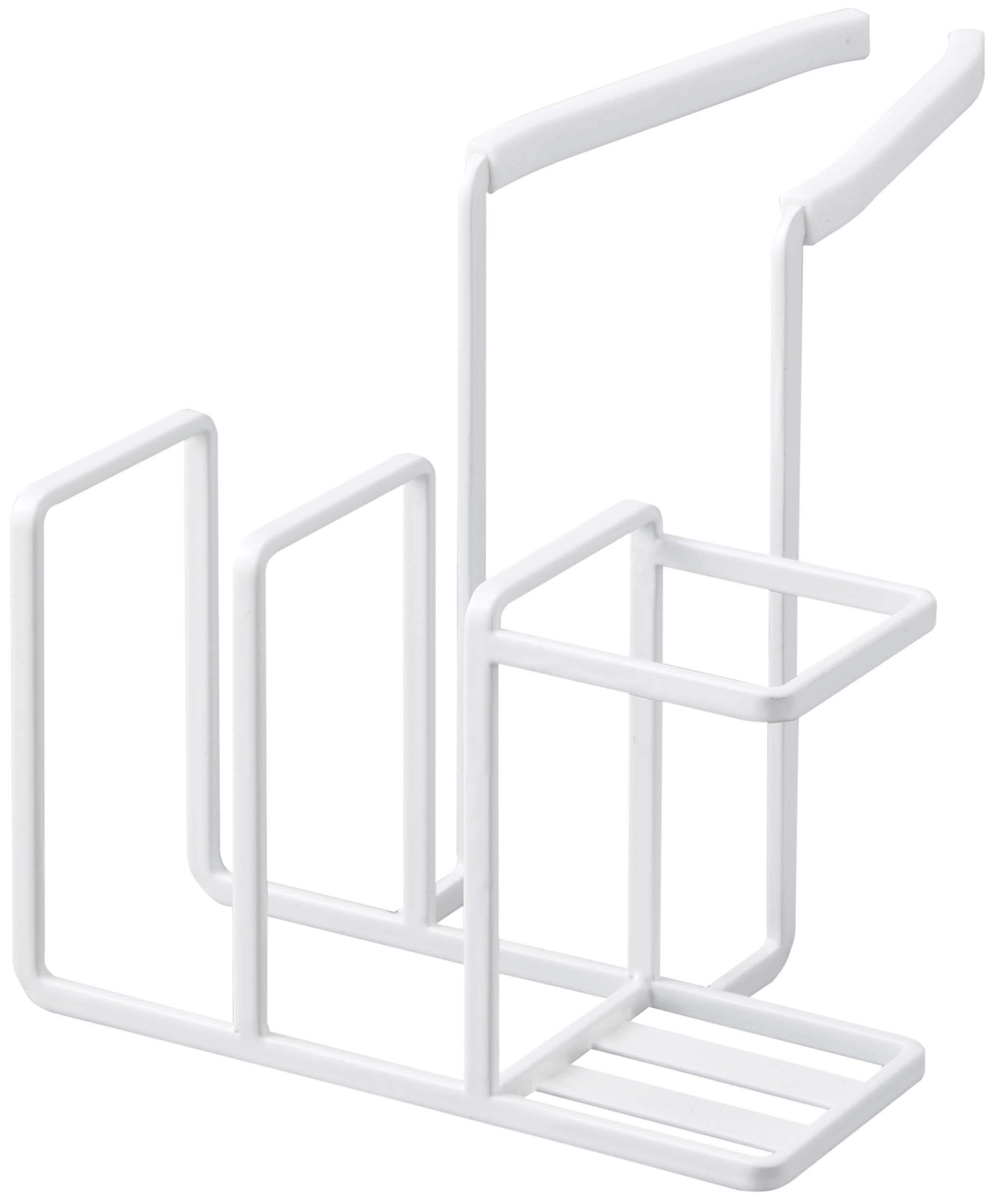 山崎実業(Yamazaki) 蛇口にかけるスポンジ&ブラシホルダー ホワイト 約W14XD7.5XH13cm プレート スポンジ置き スポンジラック ブラシスタンド 5082