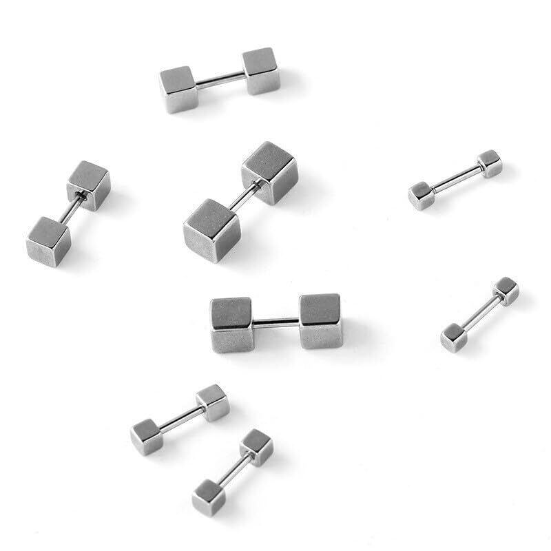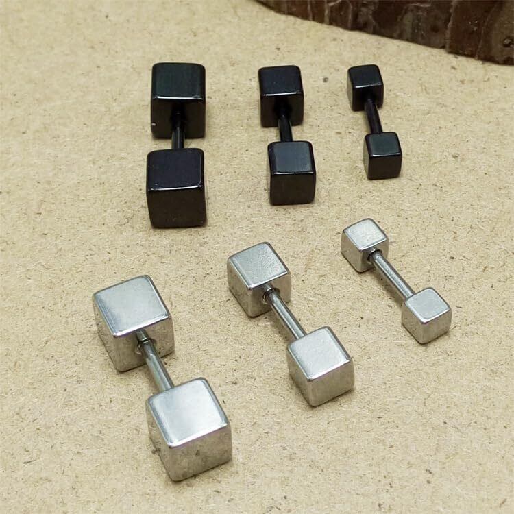 [AREUM] ピアス キューブピアス ダンベル 両端ネジ切り 四角ピアス 両耳用2つ入り シルバー ブラック お洒落 韓国ファッション 耳たぶ 軟骨