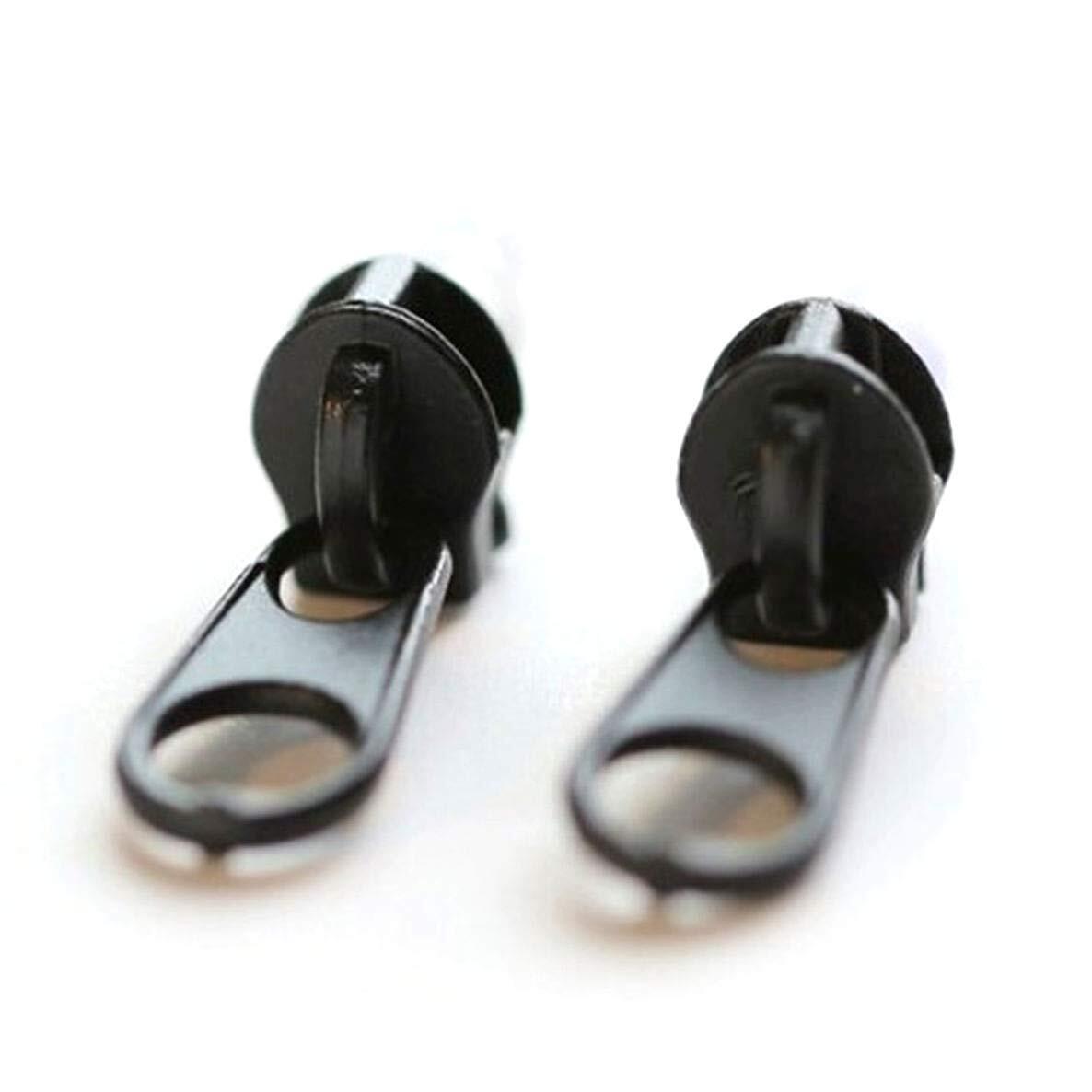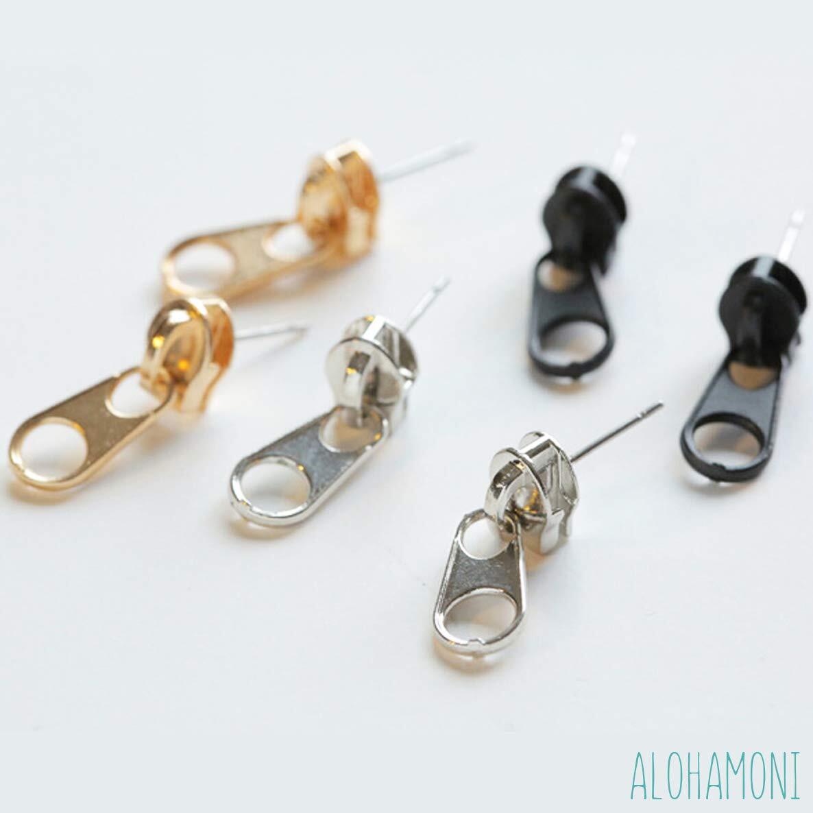 ALOHAMONI (アロハモニ) ファスナーピアス フェイク チャック ジッパー スタッド ピアス ヴィンテージ レトロ アンティーク 両耳 2個セット ステンレス シルバー レディース メンズ ユニセックス 韓国 オルチャン (ブラック)