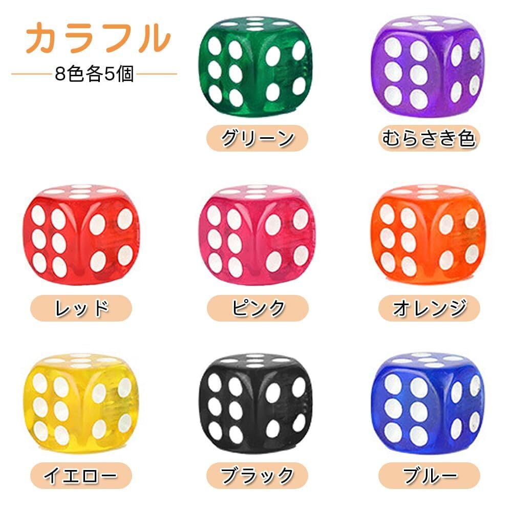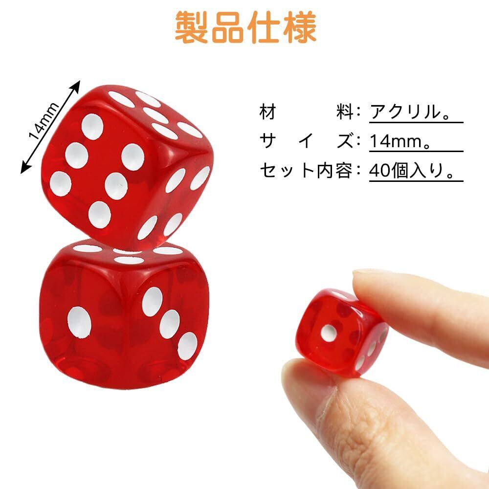 サイコロ ダイス 40個 14㎜ アクリル ダイス 角丸 半透明 6面 カラフル サイコロラウンドコーナー パーティ 旅行 KTV ゲーム用品 テーブルゲーム用 (8色)