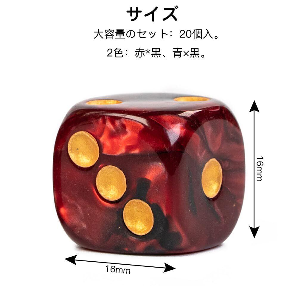 サイコロ 多面体ダイス 20個 2色 D6サイコロ 16mm ブレンドカラー きれい 6面ダイス テーブルゲーム用 ゲームパーツ カードゲーム ボードゲーム (ブラックブルー+ブラックレッド)