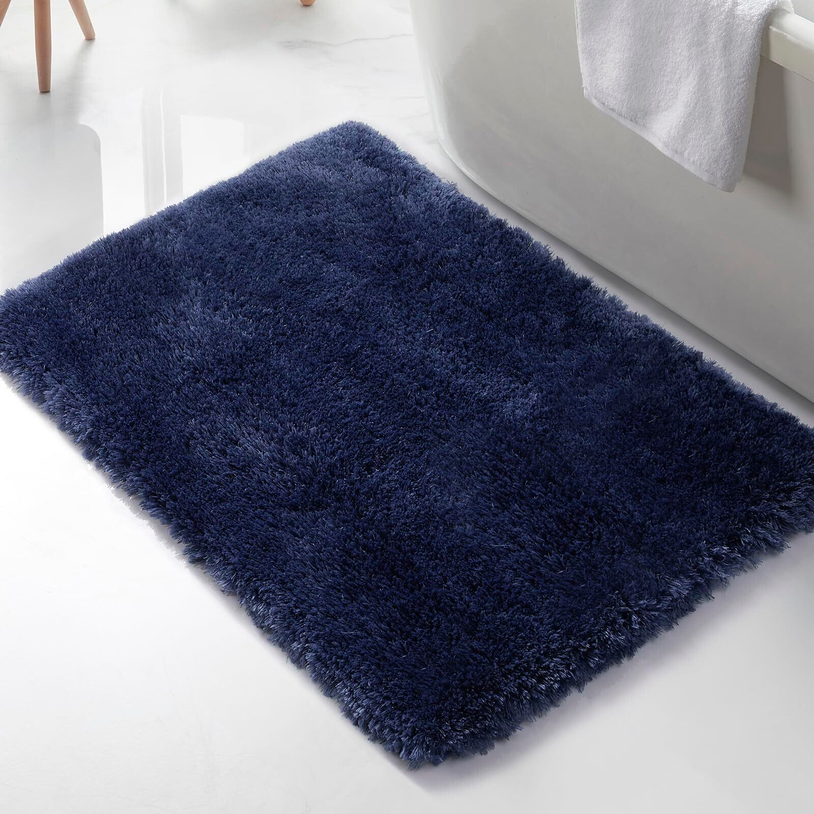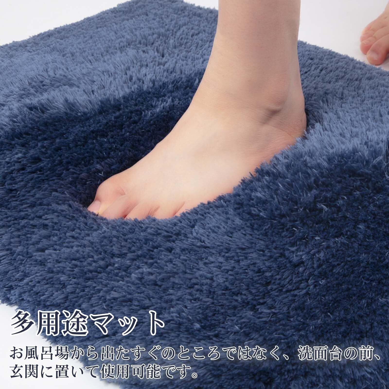 バスマット 第二代 【超長毛足&超吸水】 速乾 柔らかい 大判 お風呂マット 洗える 滑り止め 50x80cm マイクロファイバー マット 足拭き 浴室 おしゃれ 洗面所 マット 抗菌 防臭 ネイビー