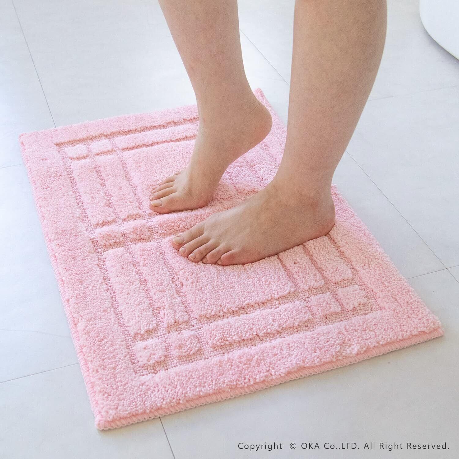オカ(OKA) クリュム バスマット 約45cm×65cm ピンク (足ふきマット 洗える 滑り止め)