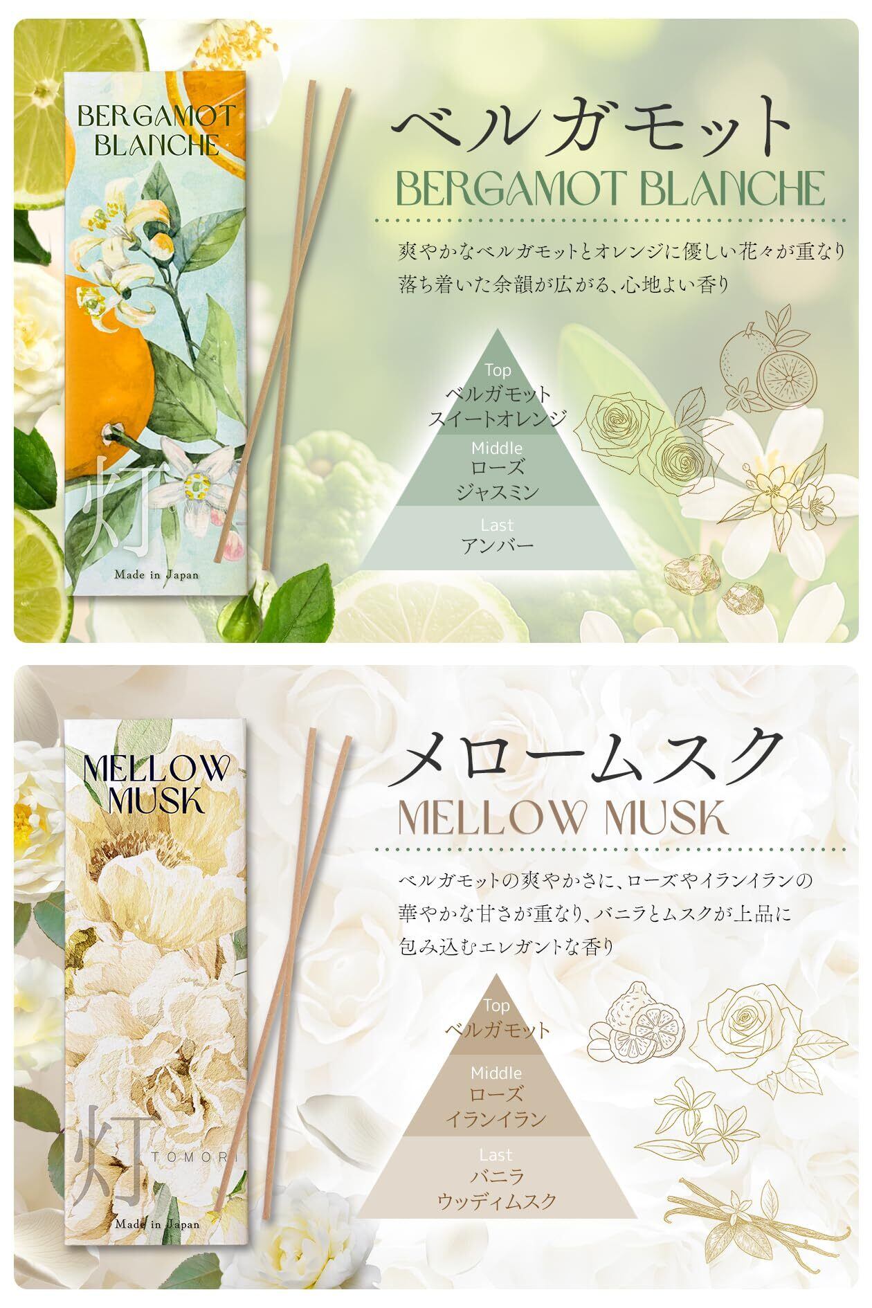 【暮らしにやさしい香りを添える】おうち時間・在宅ワーク・ヨガ・瞑想・バスタイムなど、日常のあらゆる場面に寄り添う癒しの香り。華やかでありながらやさしい調べが心を包み込み、リラックスや気分転換に役立ちます。微煙タイプで自然な香り立ちなので、香りに敏感な方も使いやすいアロマインセンスです。