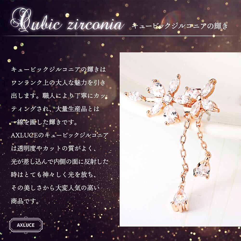 【 キュービックジルコニア 】キュービックジルコニアが使用されておりその輝きはワンランク上の大人な魅力を引き出します。職人により丁寧にカッティングされたキュービックジルコニアなので、大量生産品とは一線を画した輝きです。AXLUCEのキュービックジルコニアは透明度やカットの質がよく、光が差し込んで内側の面に反射したときにはとても神々しく光を放ち、エレガントなスタイルを受け支えてくれます。キュービックジルコニアのイヤリングは自分の輝きを出すため、または相手の輝きを出すのに最適なアイテムです。