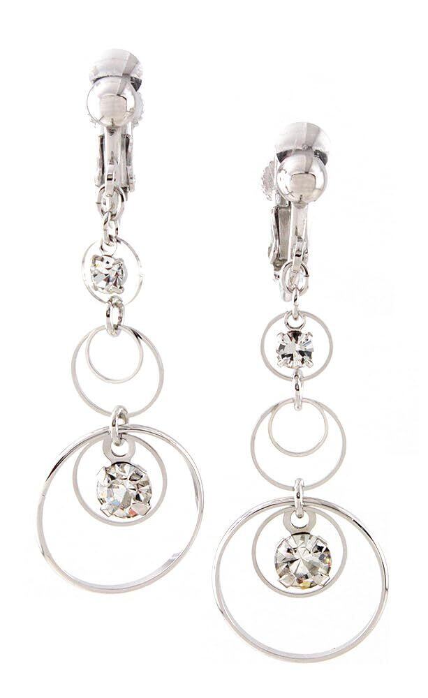【耳元で煌めくアクセサリー】いろいろなサイズのリングにストーンを添えて、存在感のあるイヤリングに仕上げました。耳元で揺らめく女性らしいデザインです。