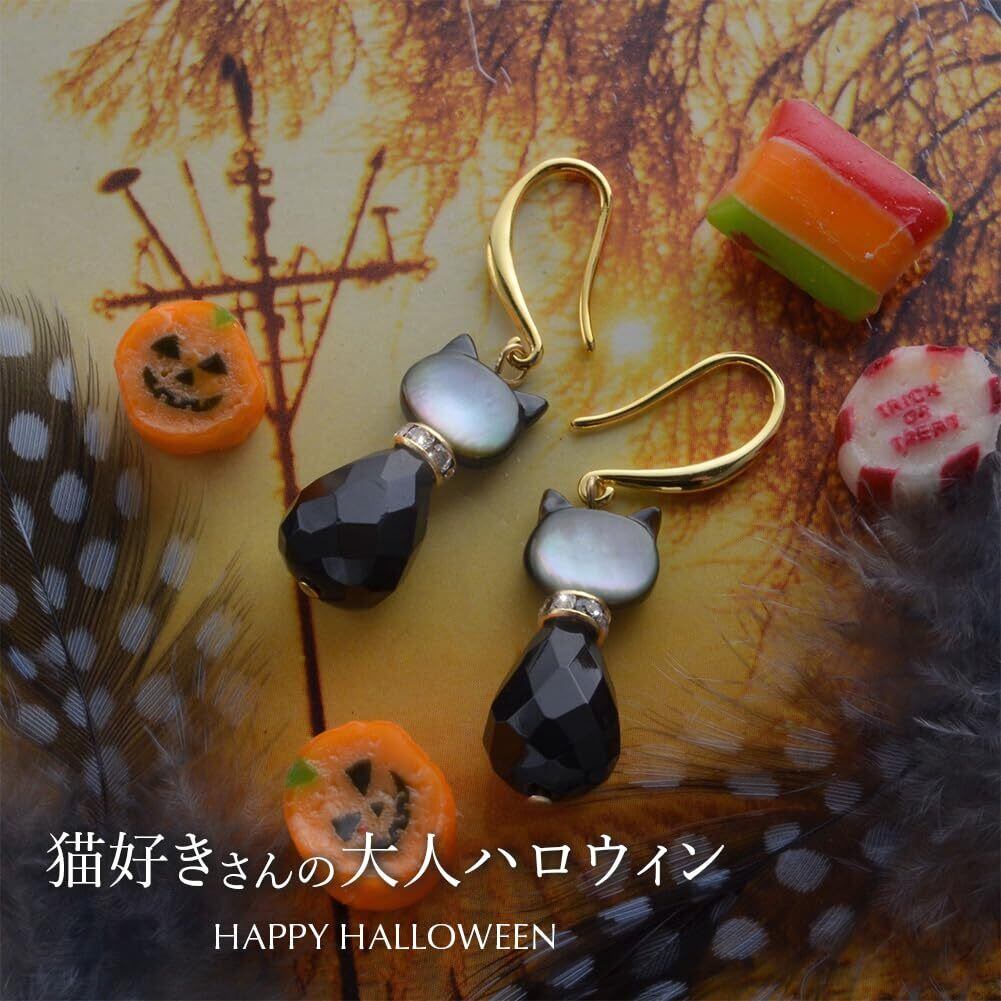[R-days代官山] ハロウィン マザーオブパール キャットモチーフ ピアス ノンホールピアス レディース 黒猫 白猫 日本製