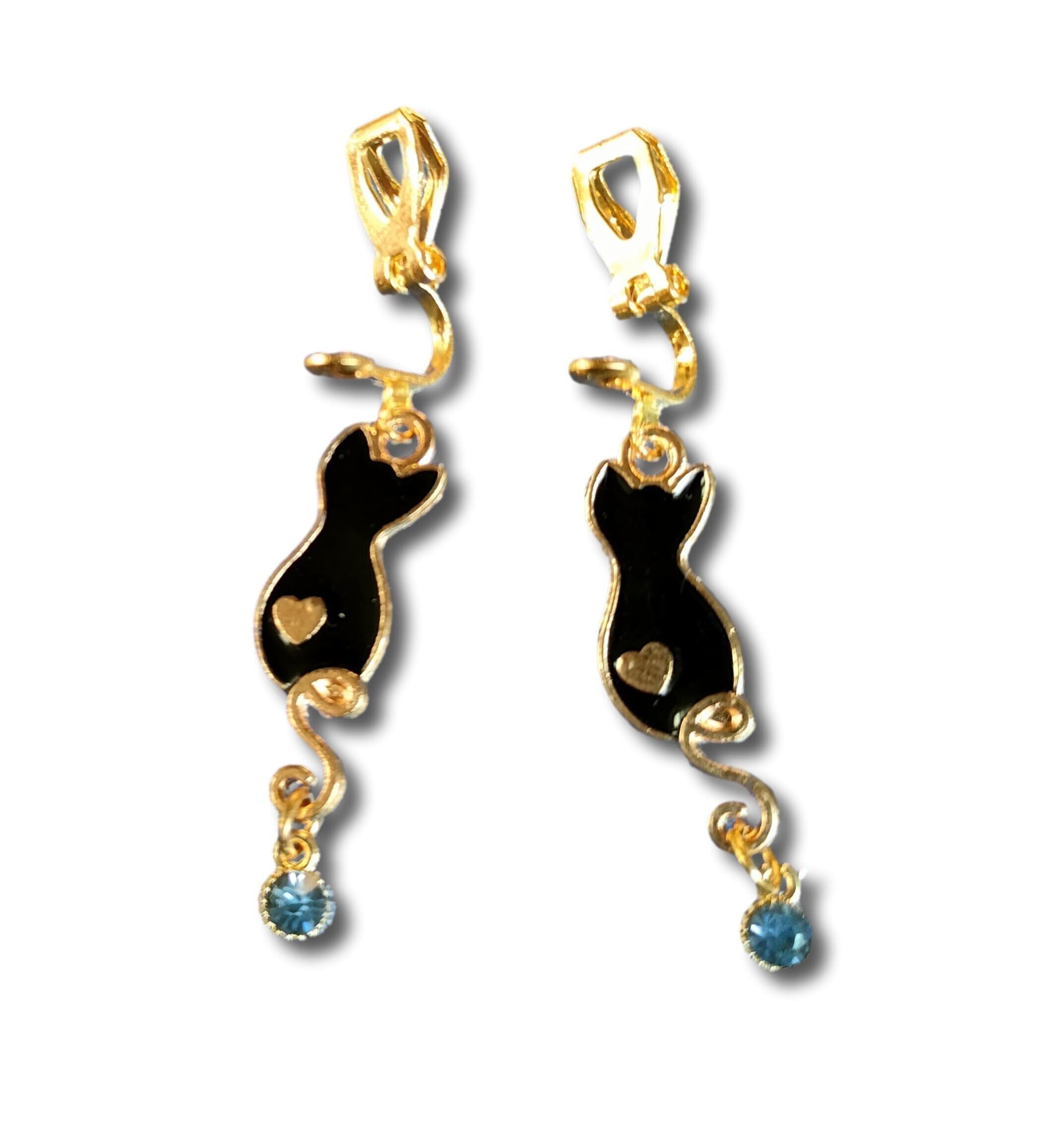 黒猫 イヤリング ゴールド イヤーカフ 猫 ネコ レディース かわいい 記念日 プレゼント 黒 青