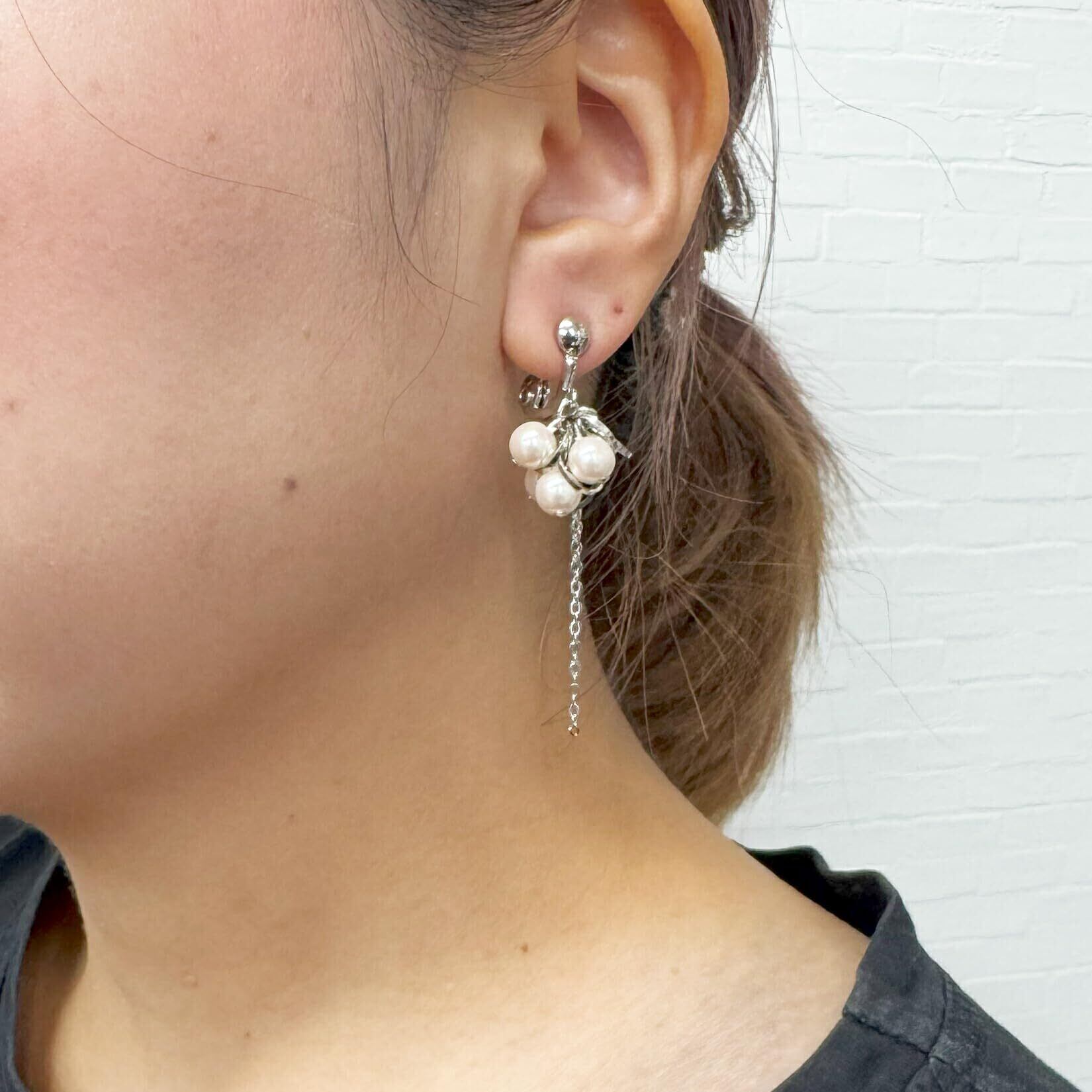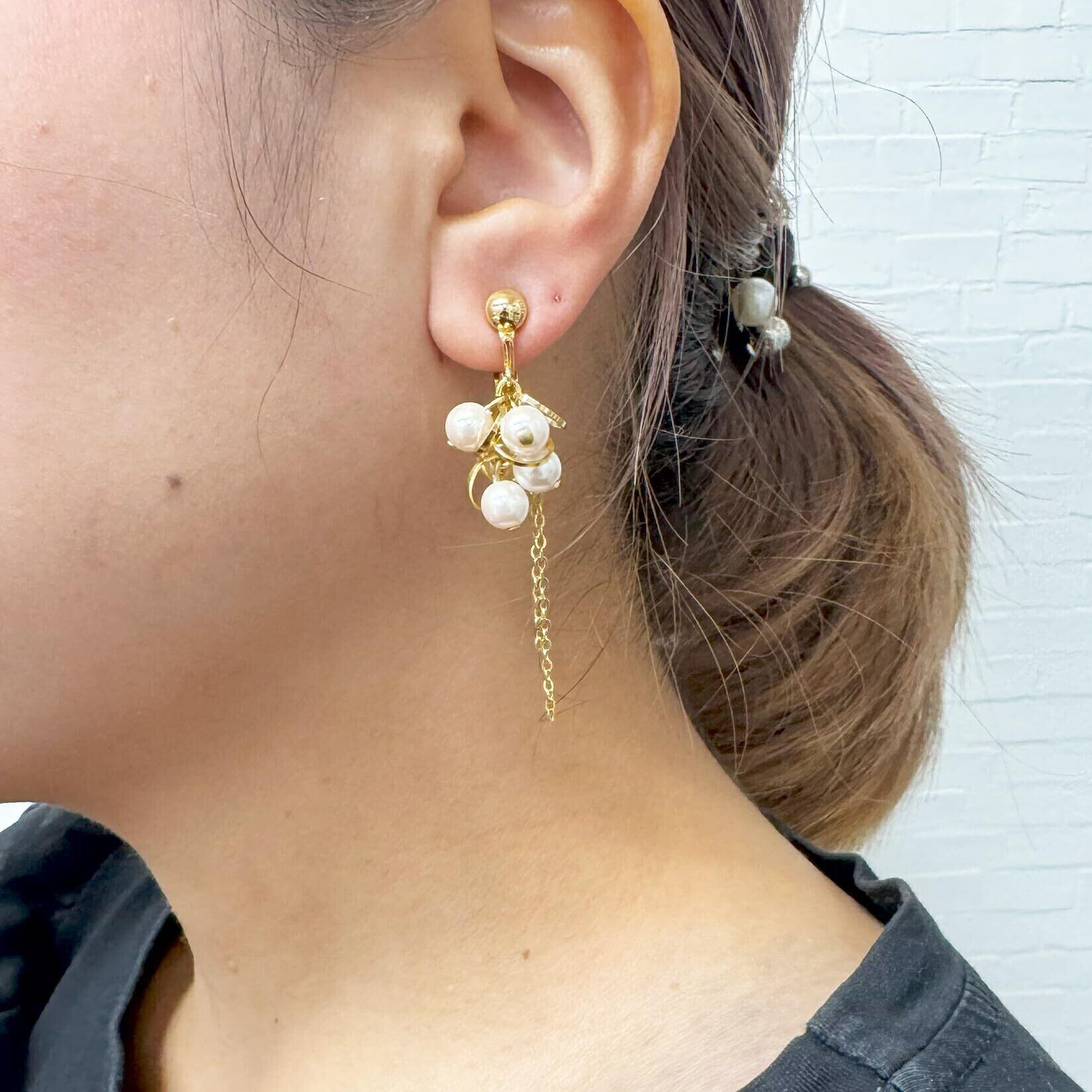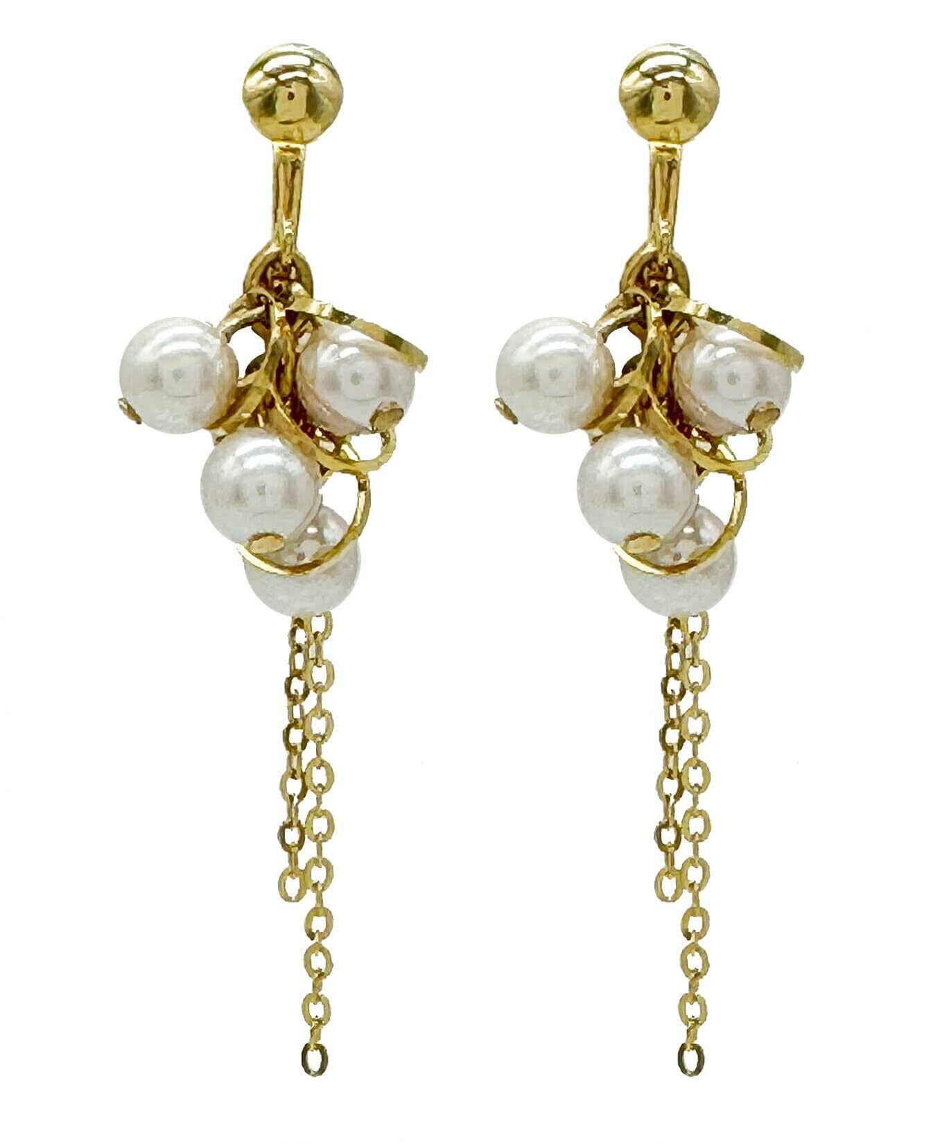 [ジュエリーショップエム] レディース イヤリング パール リング チェーン シンプル ソフトクリップ 日本製 アクセサリー e2862