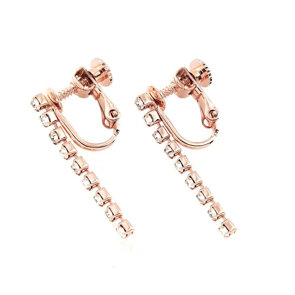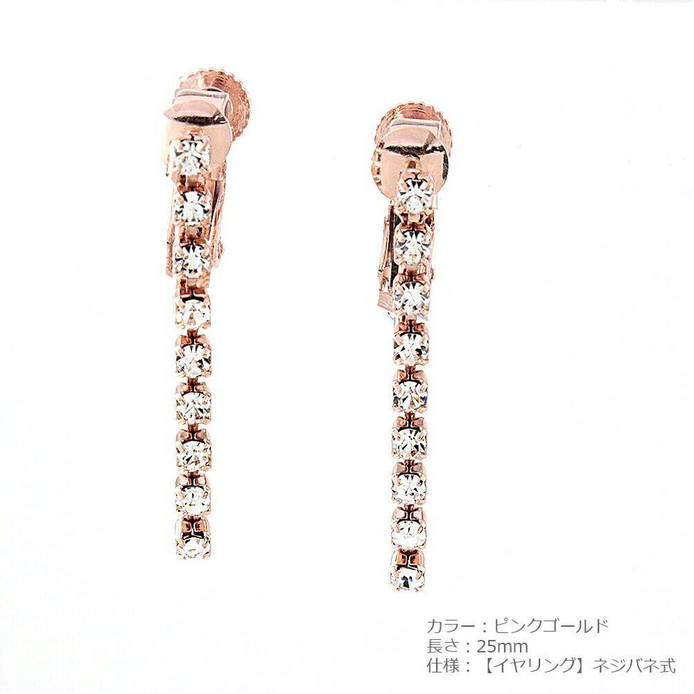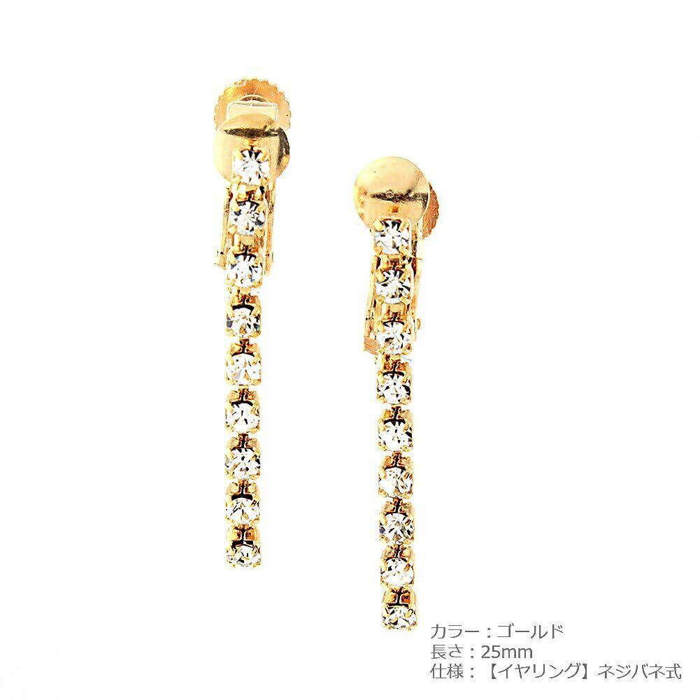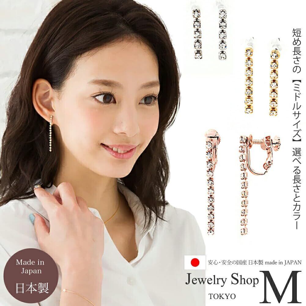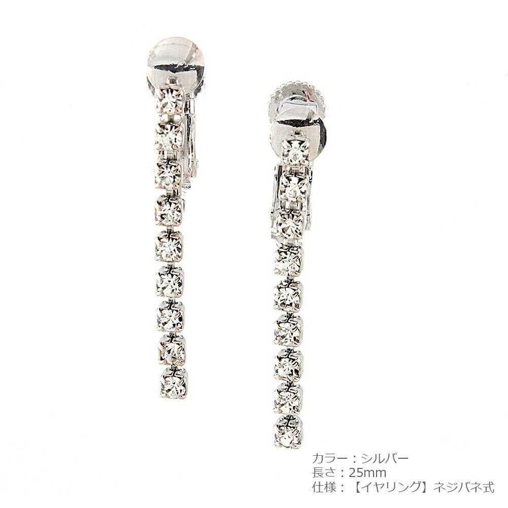 [ジュエリーショップエム] ラインストーン ダイヤレーン イヤリング ネジバネ式 レディース アクセサリー 日本製