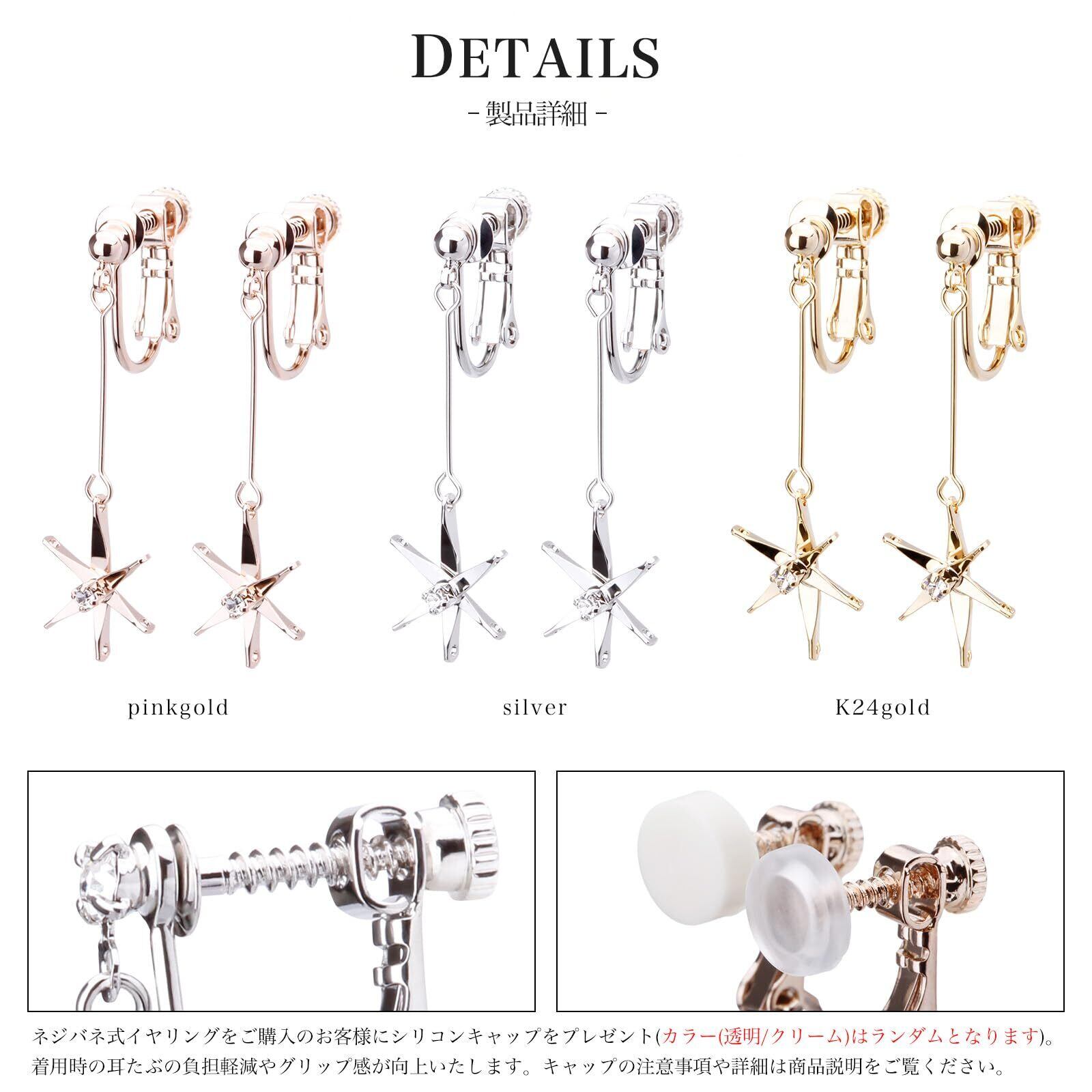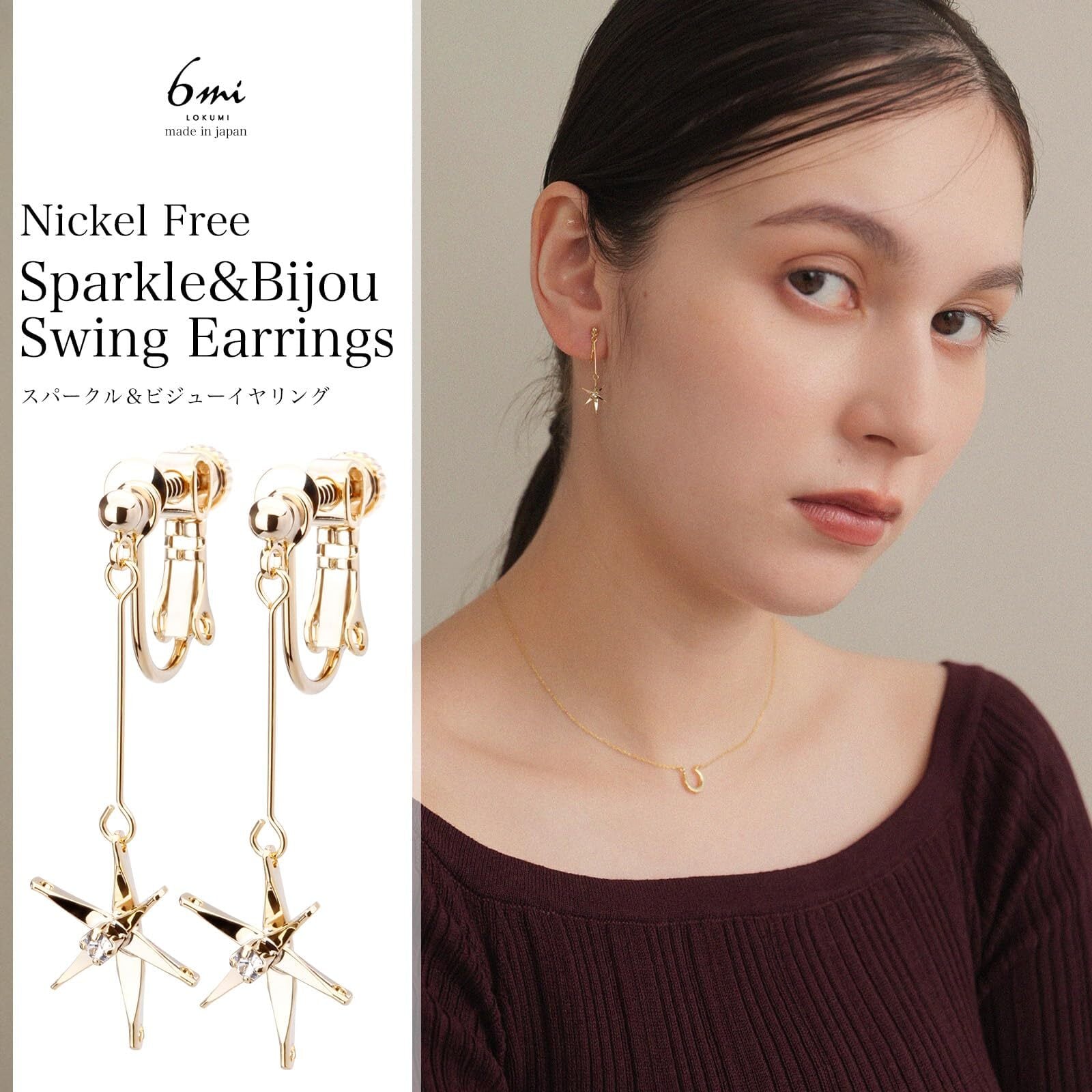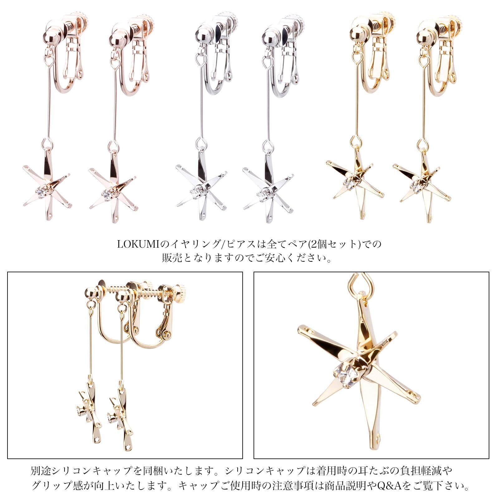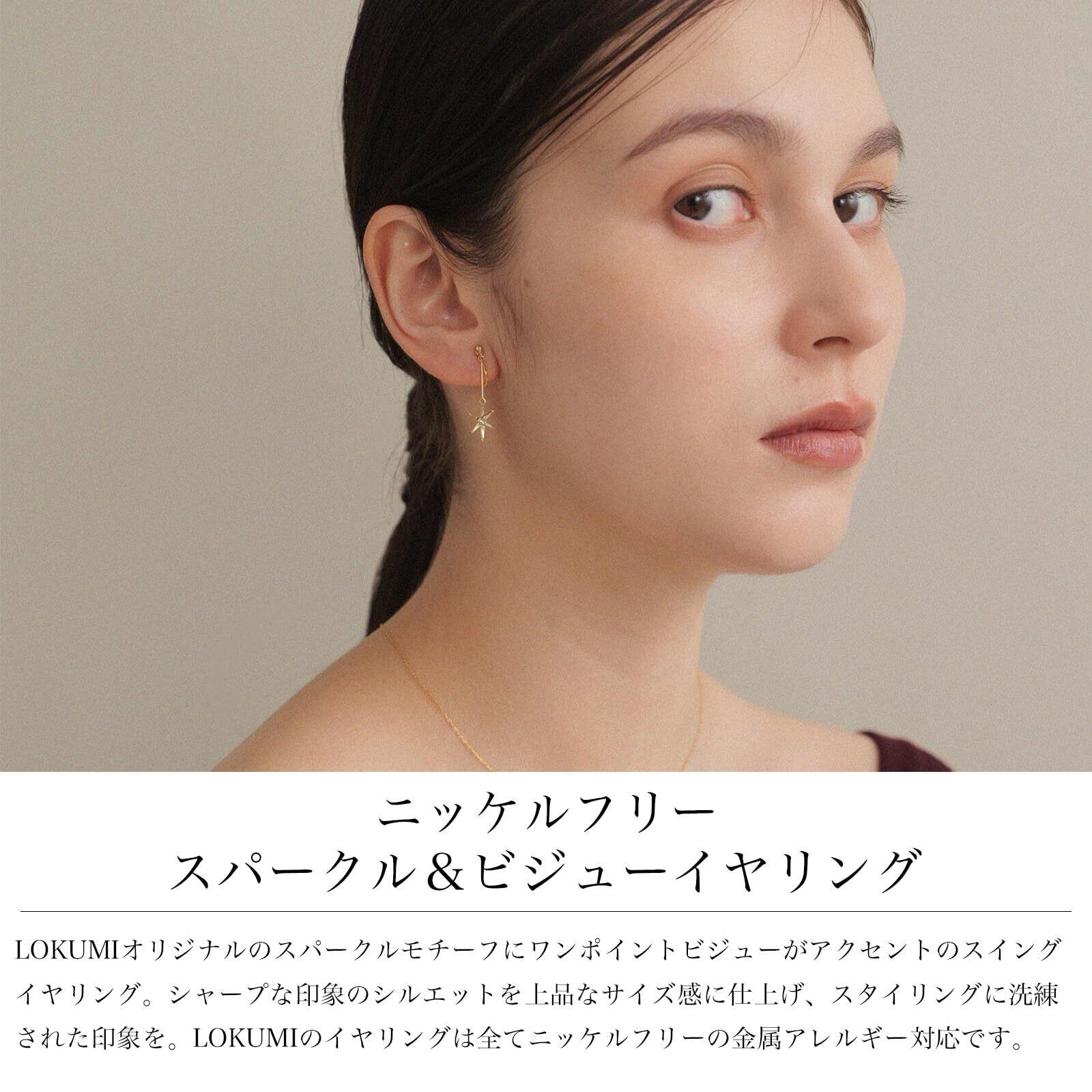 LOKUMI イヤリング 金属アレルギー対応 日本製 シリコンカバー付 スパークル ビジュー スパーク シンプル 揺れる ロング シルバー ゴールド ピンクゴールド 金メッキ K24メッキ ネジ式 金属アレルギー対応イヤリング ne-67