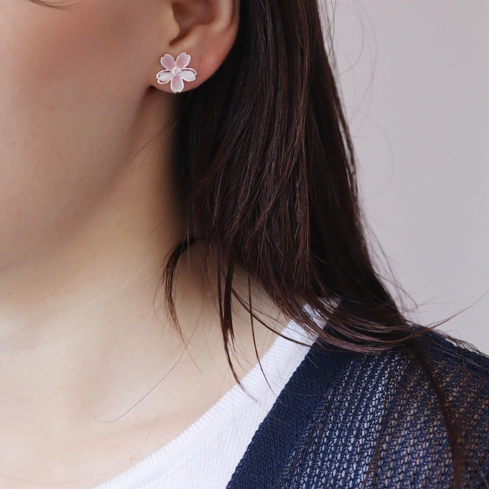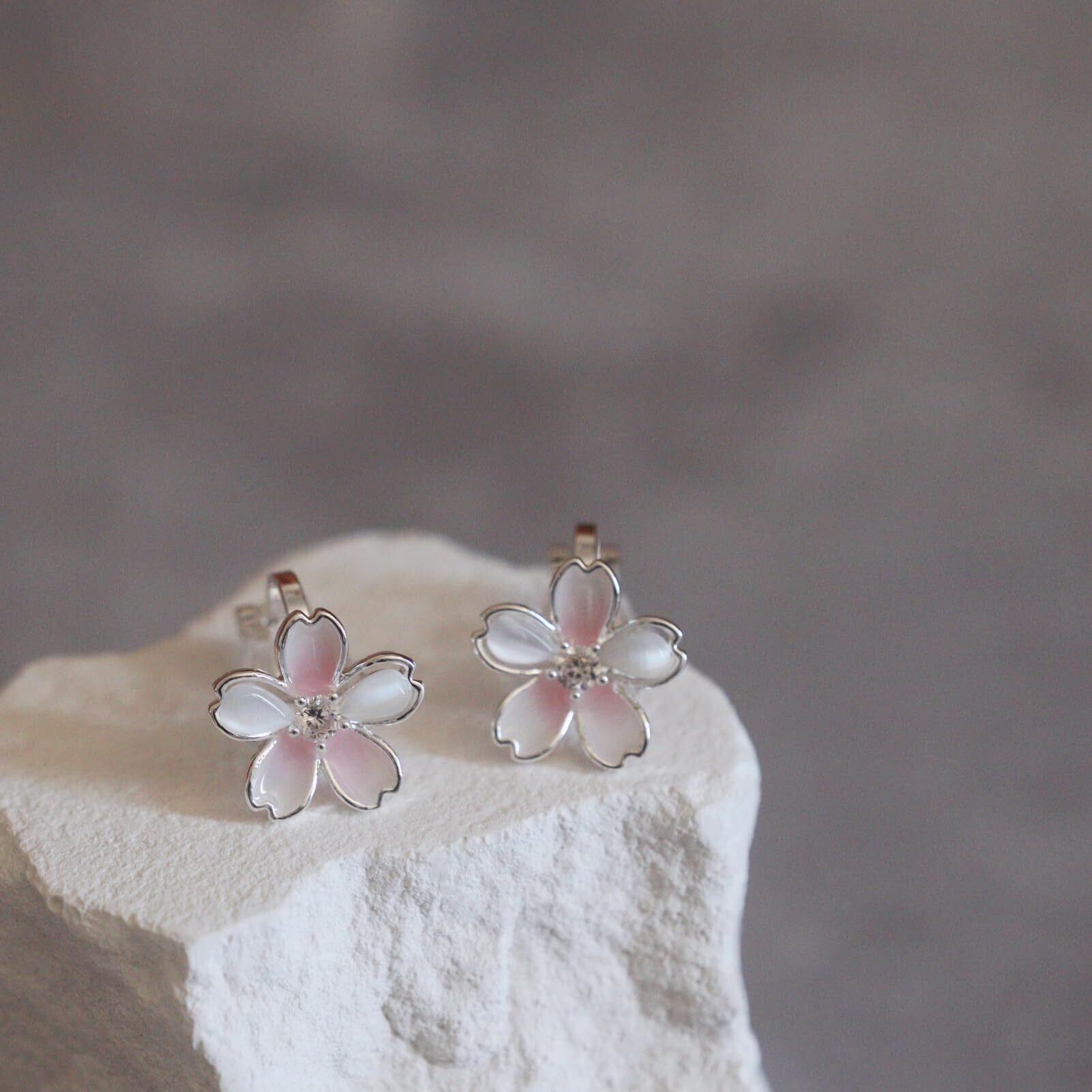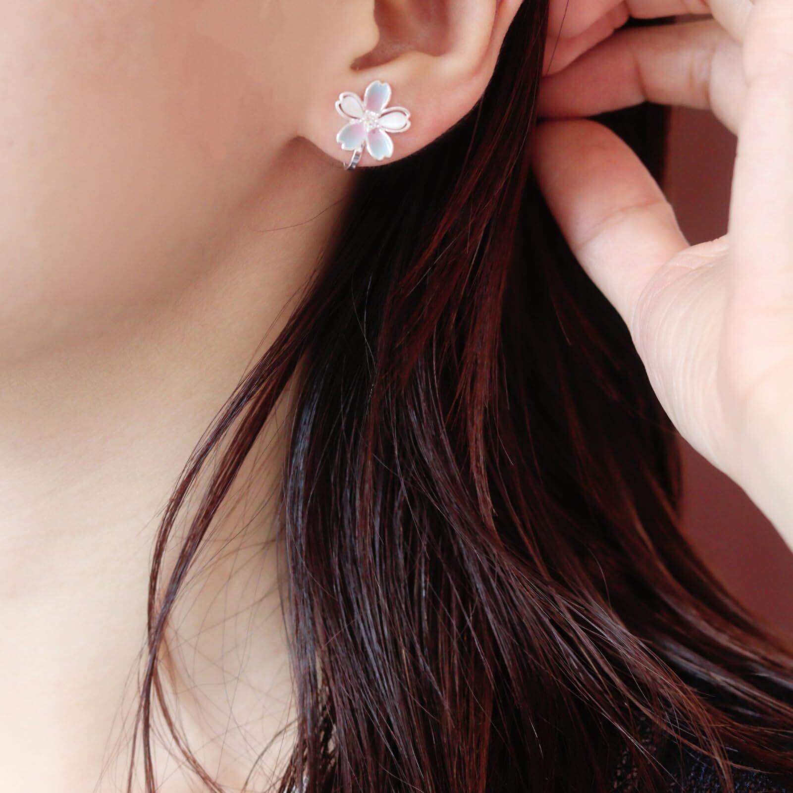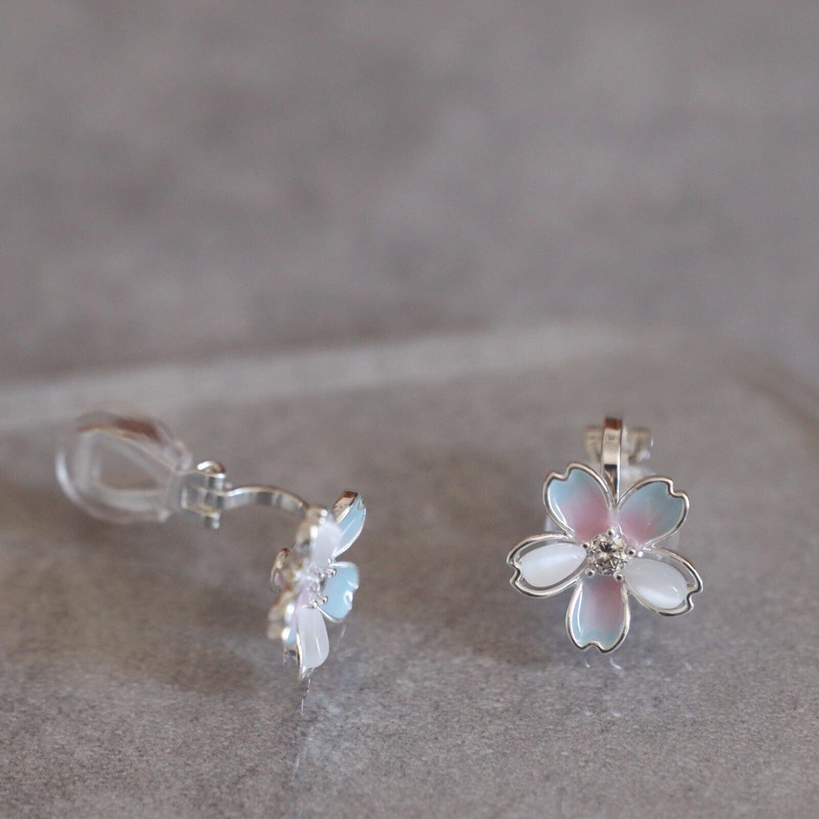 イヤリング レディース 人気 クリップ 痛くない ノンホール 金属アレルギー対応 花モチーフ 桜 シンプル キラキラかわいい
