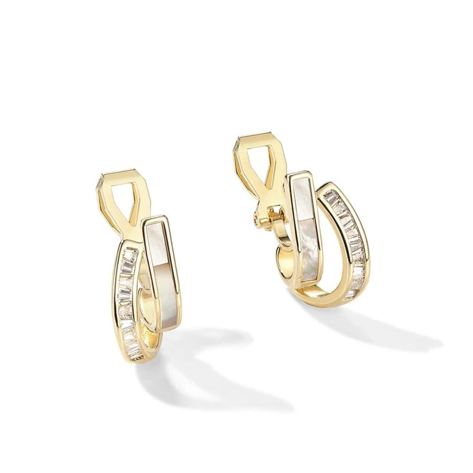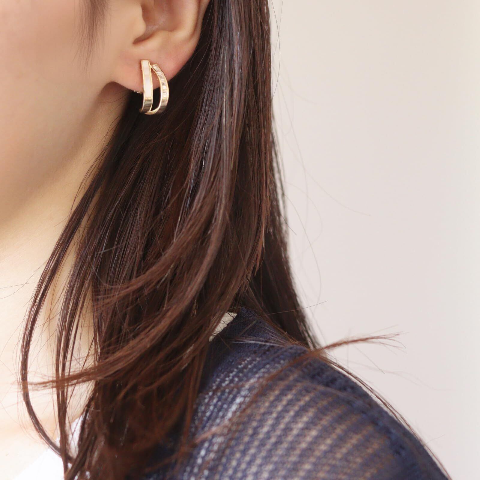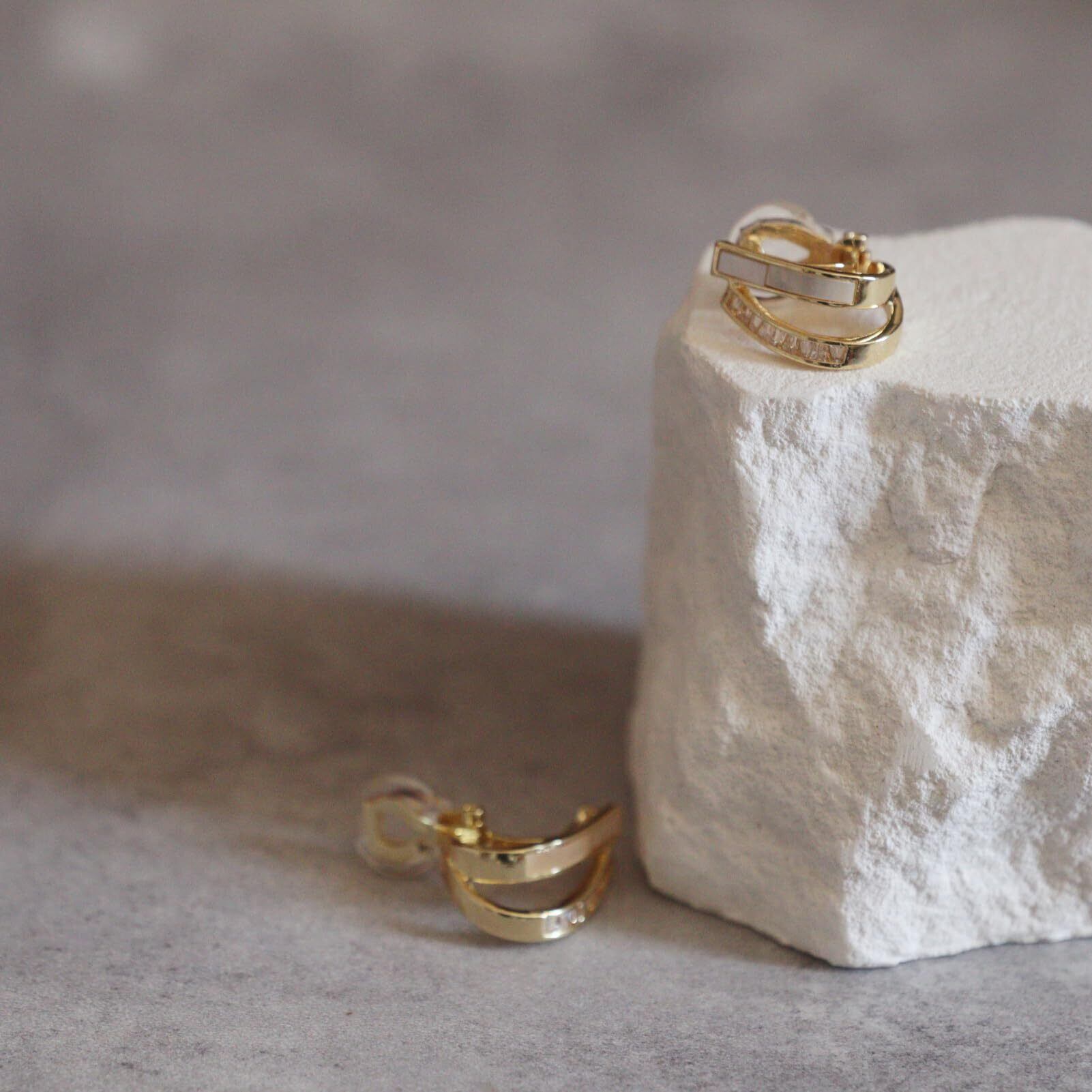 Moonstan イヤリング レディース 人気 ゴールド シルバー 金属アレルギー対応 クリップ 痛くない ビジュー 2連 シンプル 存在感 落ちない