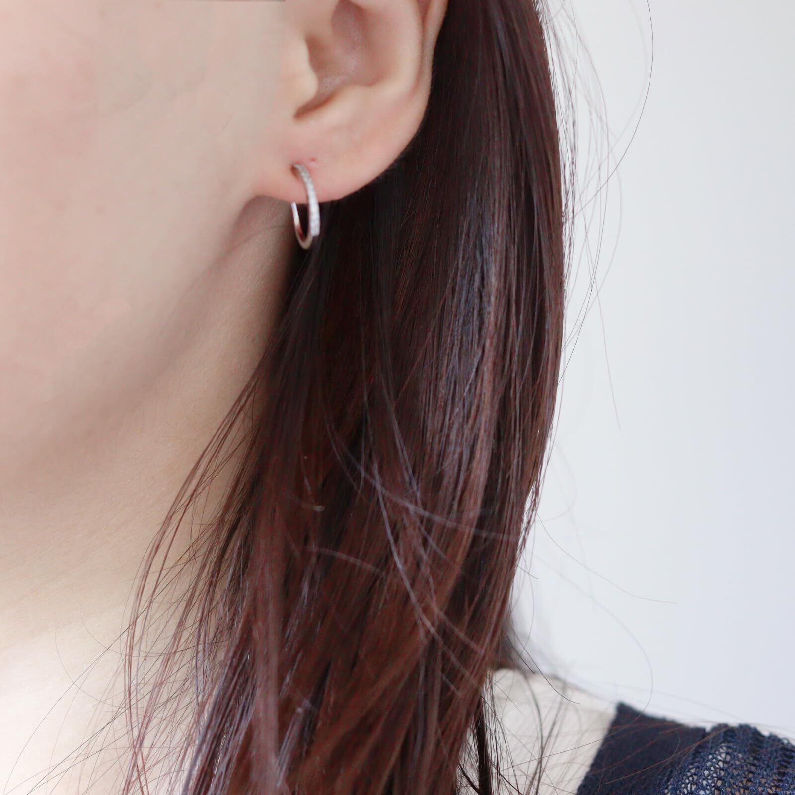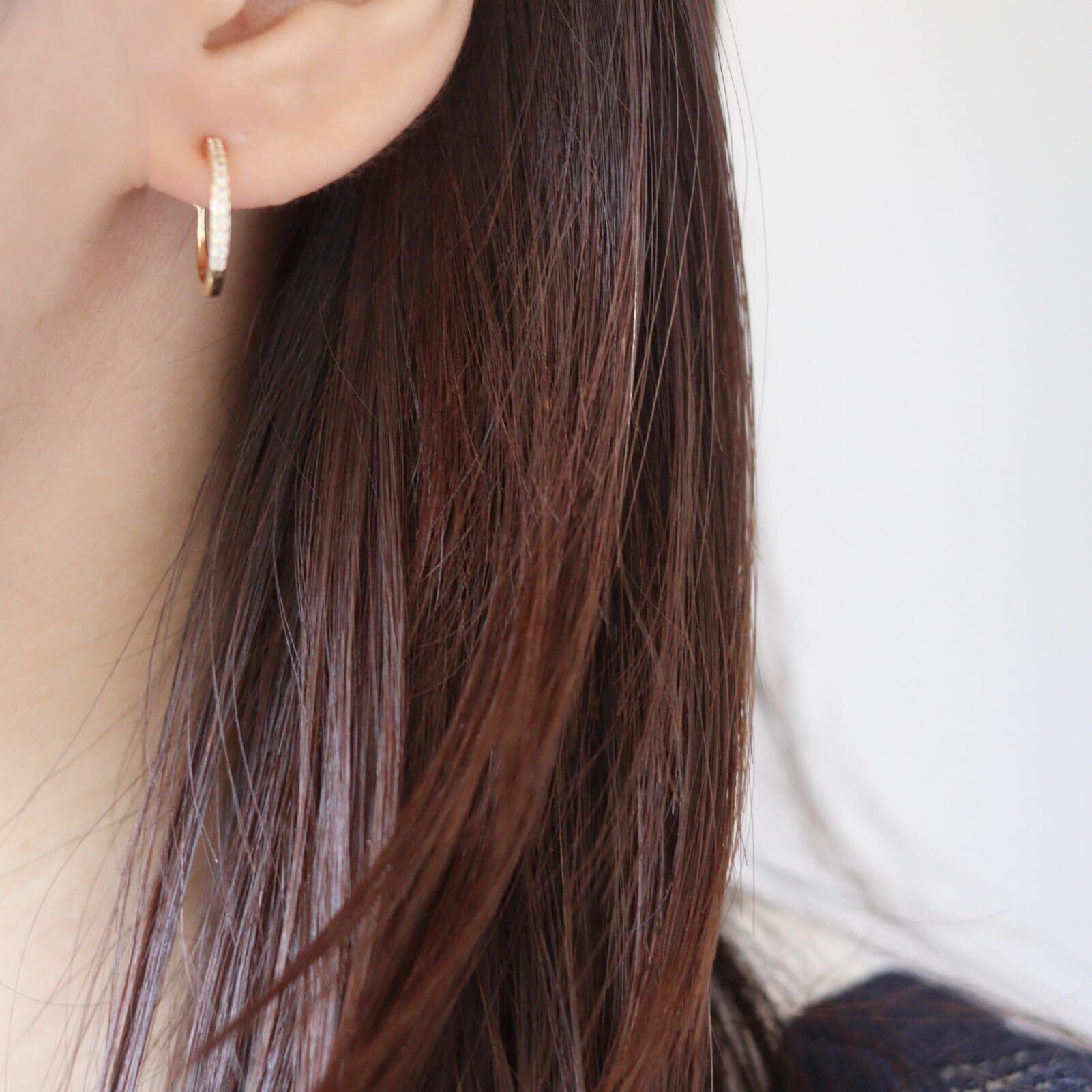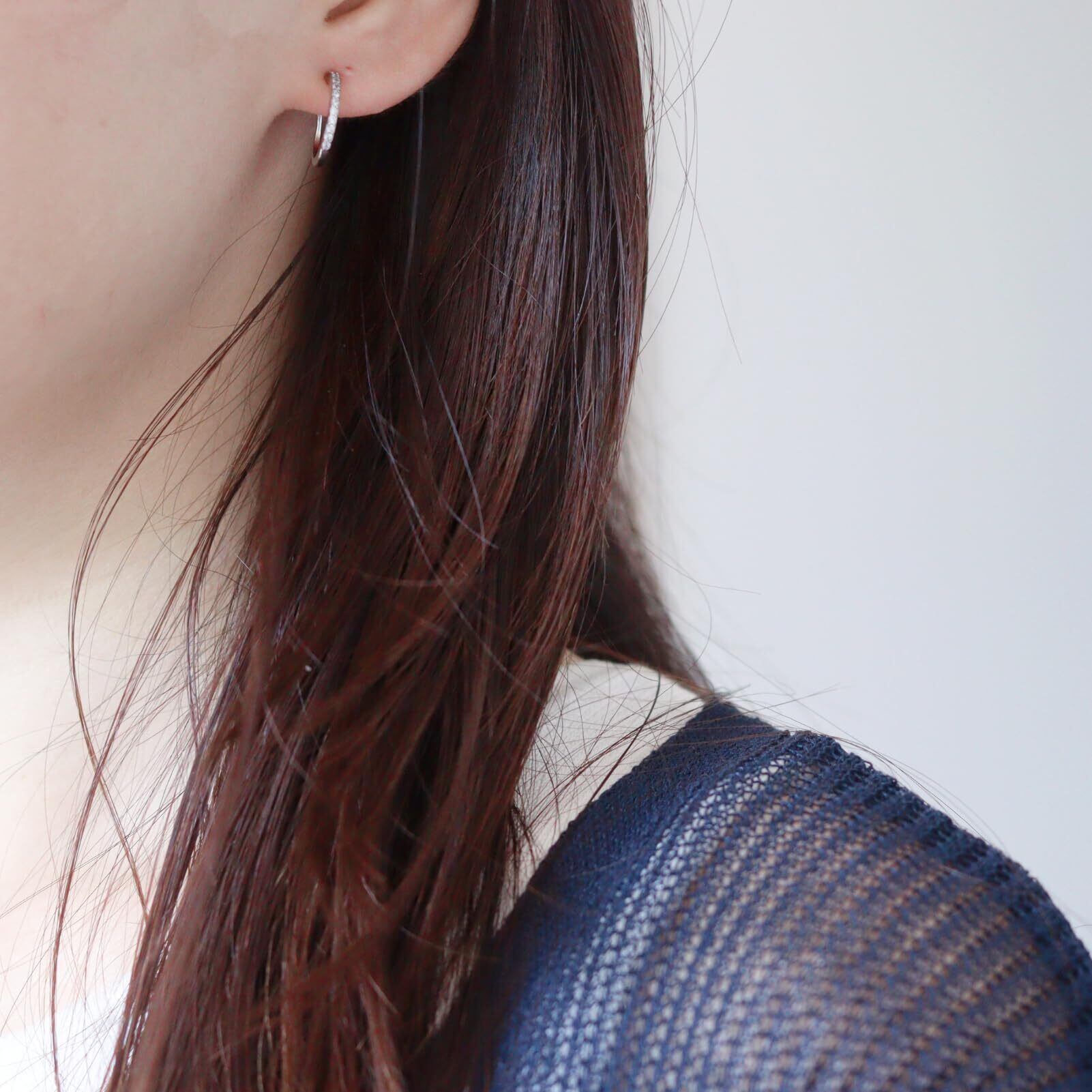 イヤリング金具を最小限に軽量化したことで、ストレスフリーな着け心地とピアスのようなルックスを実現
