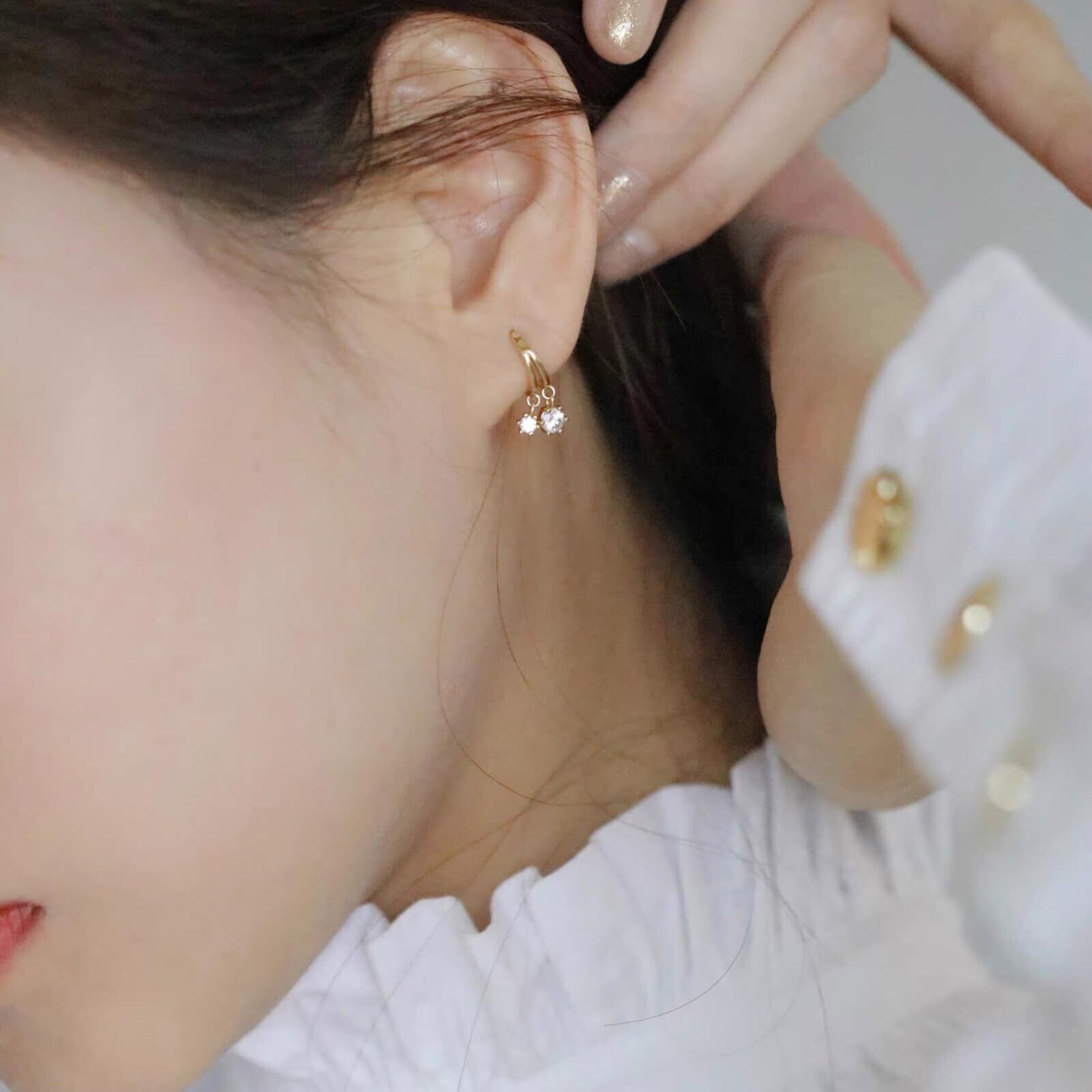 素材:真鍮、キュービックジルコニア;ダイヤサイズ:2mm/3mm;フープ内径:約8mm;フープ外径:約1cm