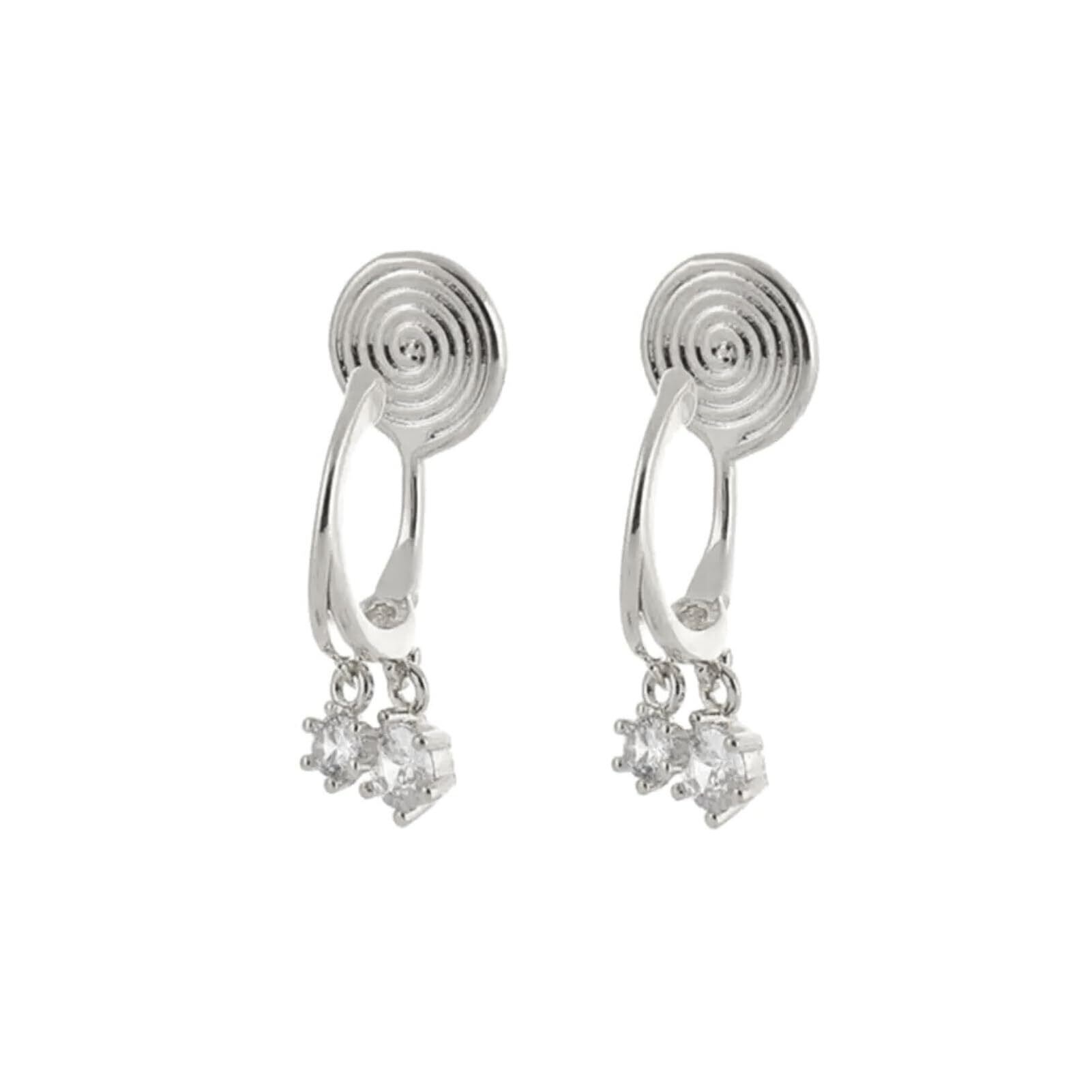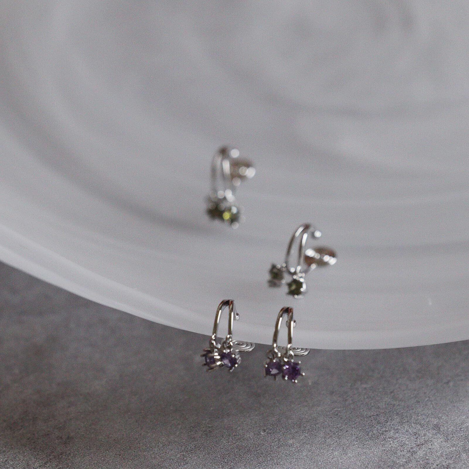 2石のビジューと上品なメタルの煌めきが、耳元を品良く彩ります。