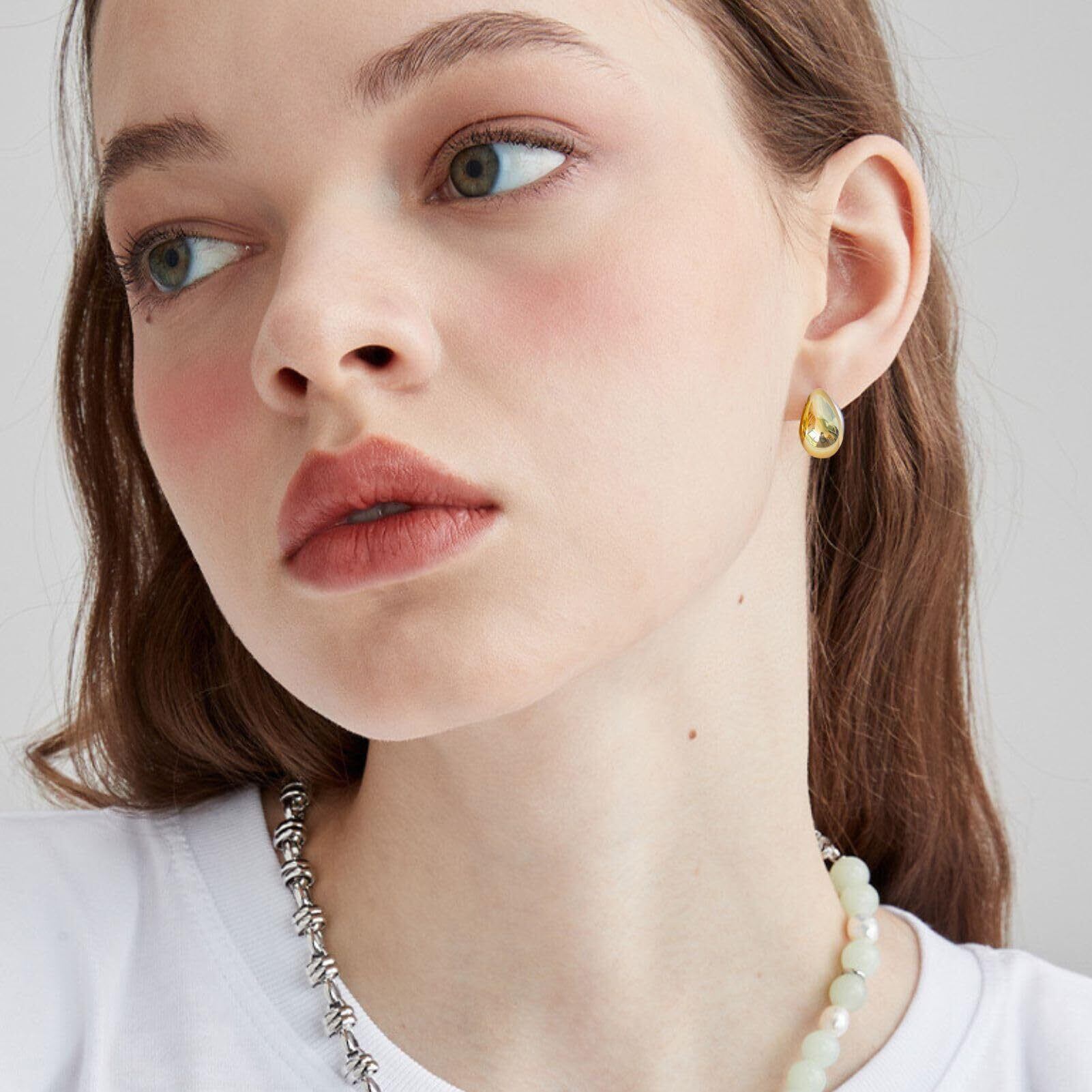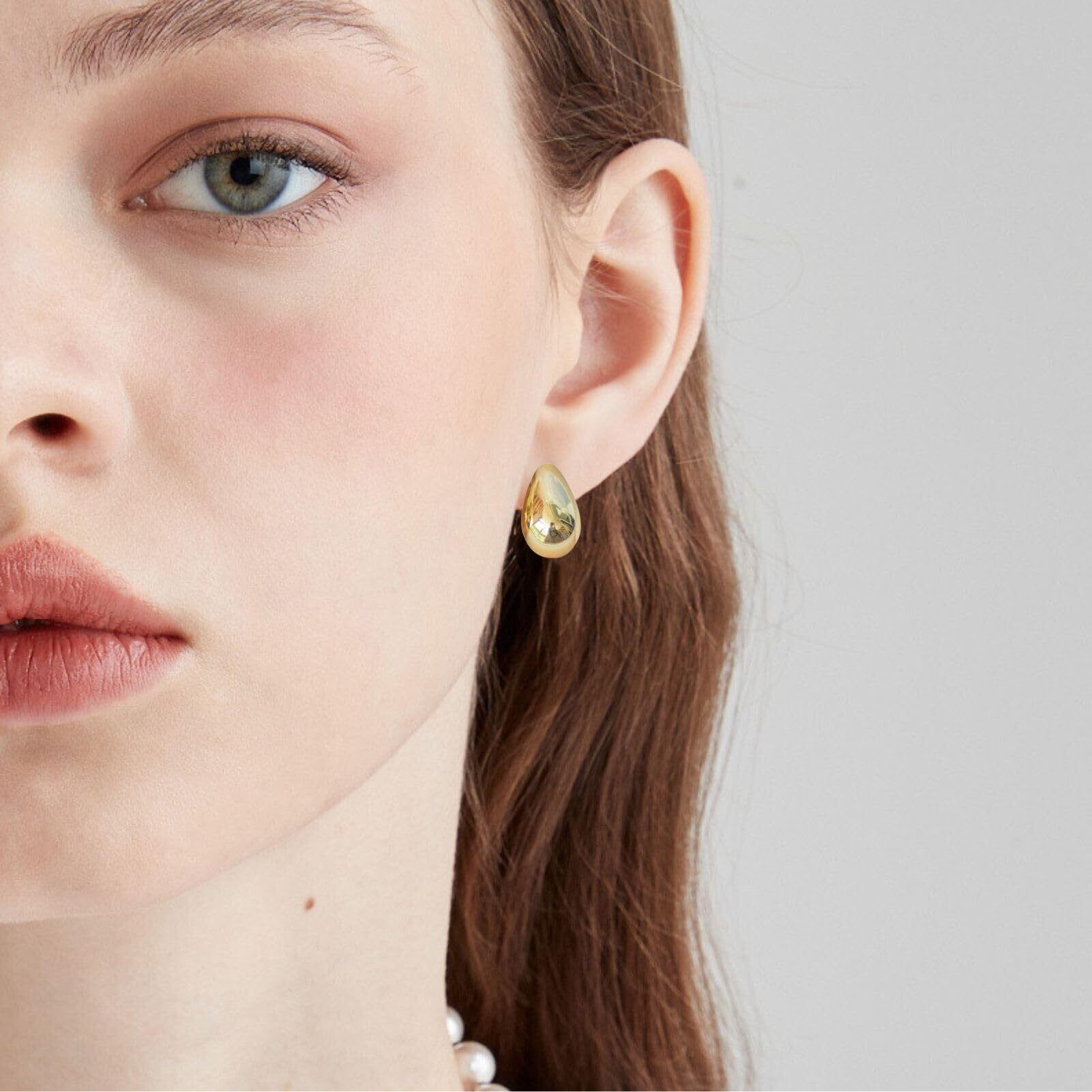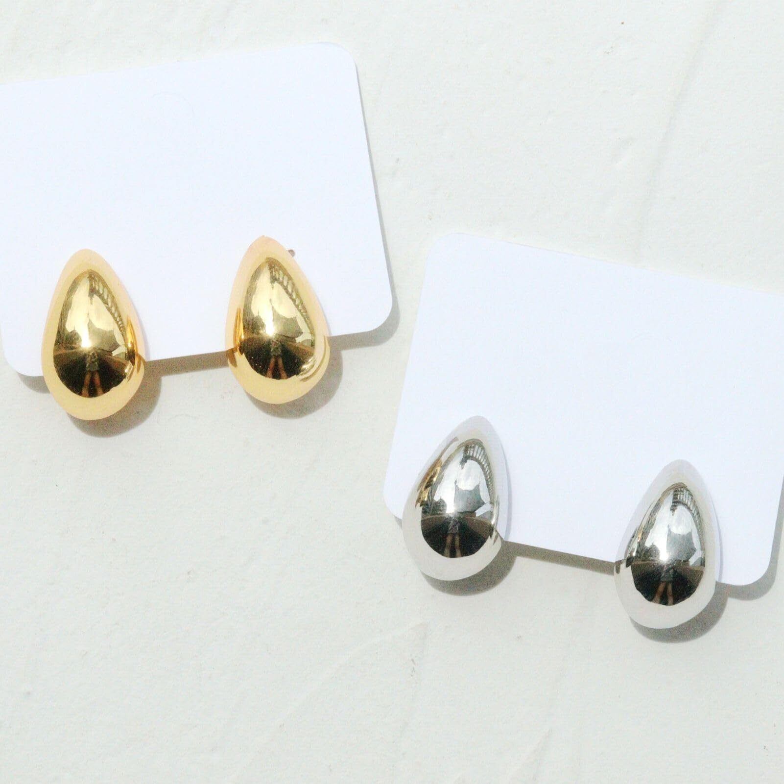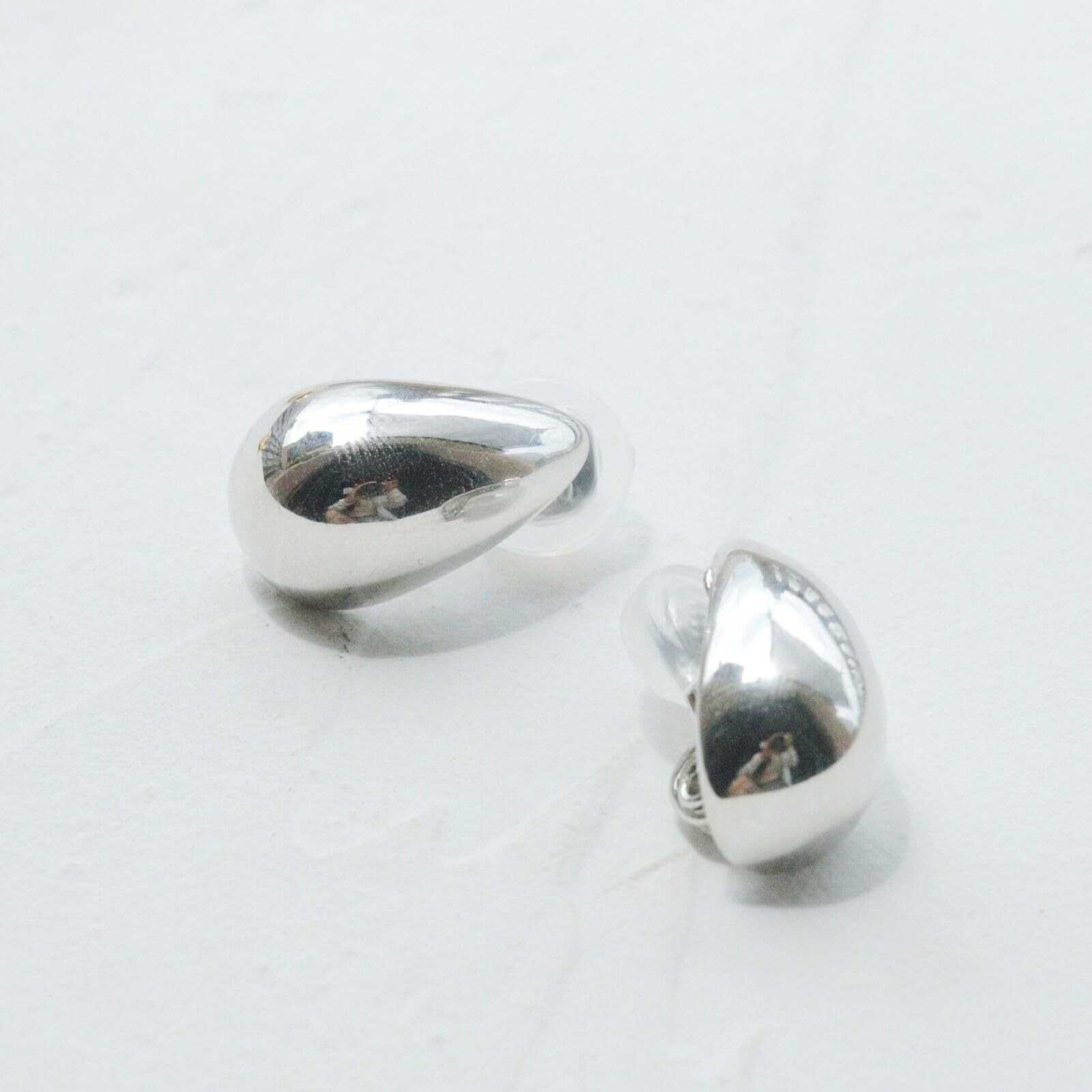 ぷっくりとしたフォルムが魅力のドロップ型メタルイヤリング。