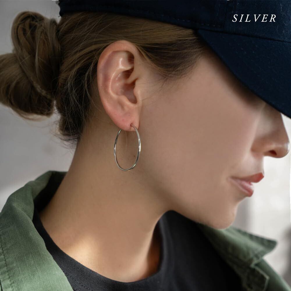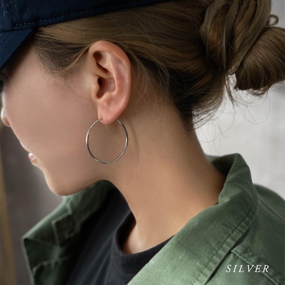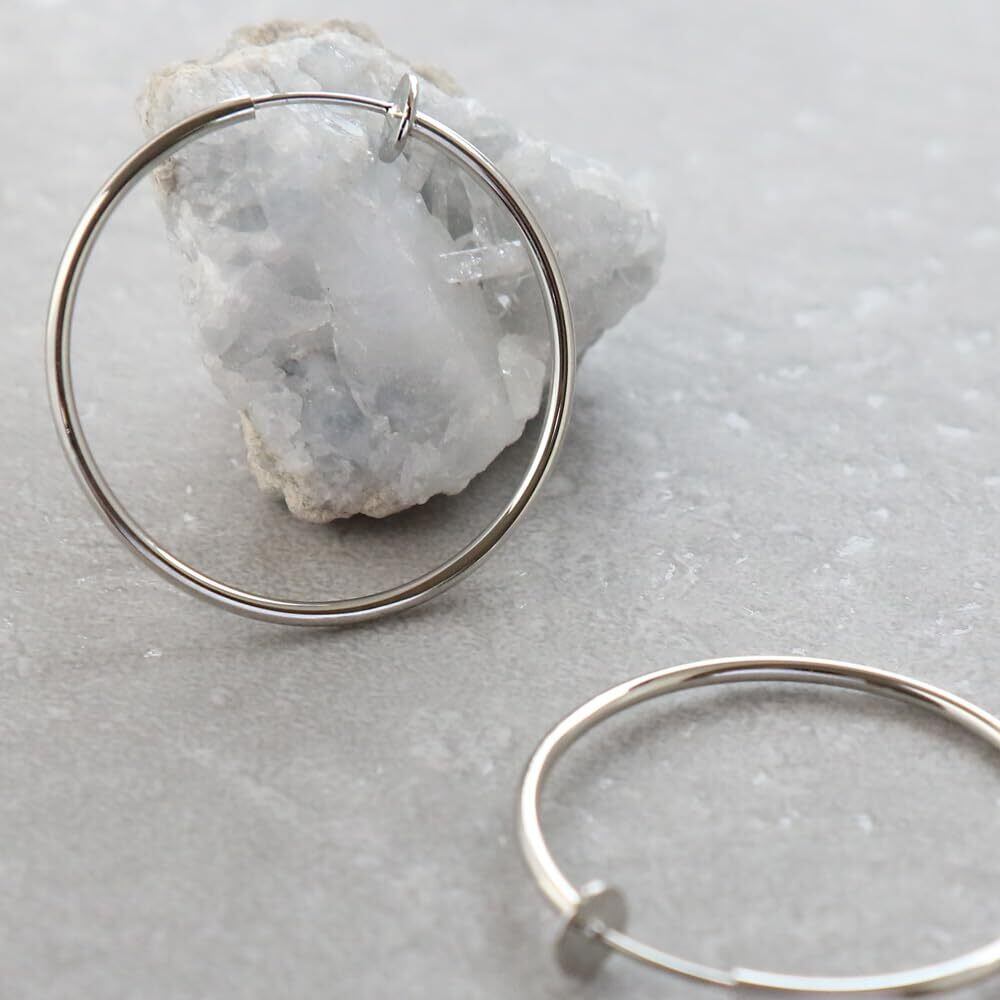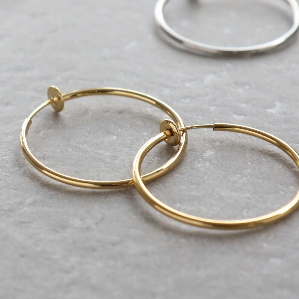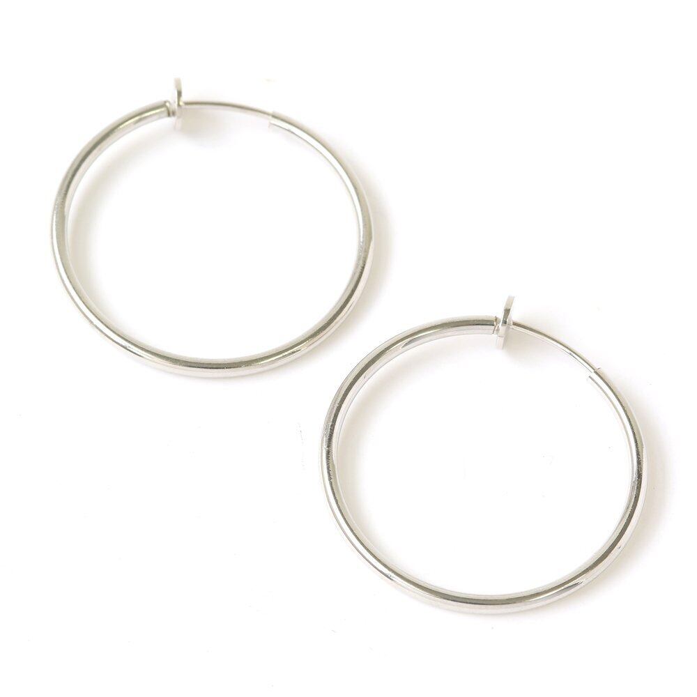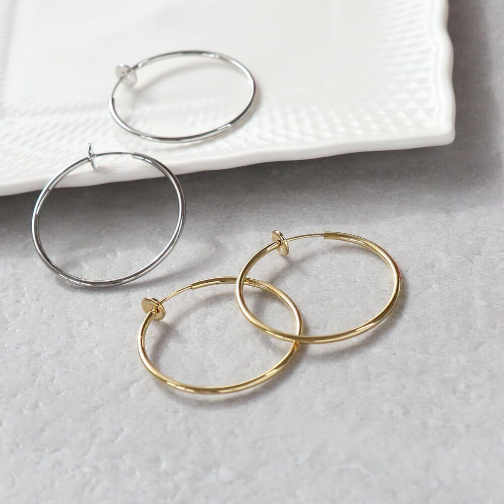 ピアスの穴がないけど…ピアスみたいに付けたいなぁって思ってた人に朗報! 見た目はまるでピアスのようなシンプルフープイヤリング 通常のイヤリングなら留め具が目立ってなんだかやぼったくなってしまう…スライド式だと見た目もスリム!! ノンホールでつけられるピアスのようなシンプルフープは重宝しそうです!
