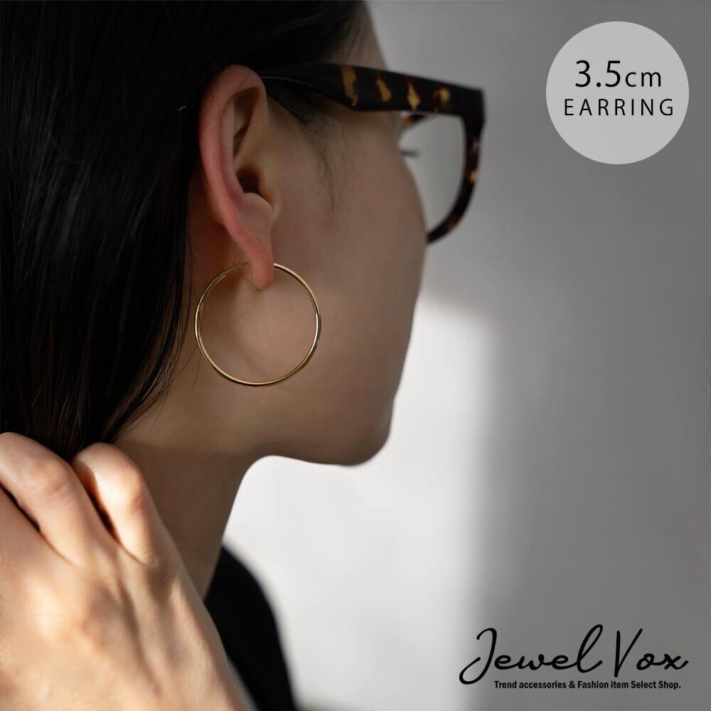 [ジュエルボックス] JewelVOX イヤリング フープ シンプル 3.5cm フープイヤリング 大人