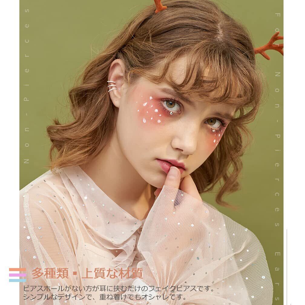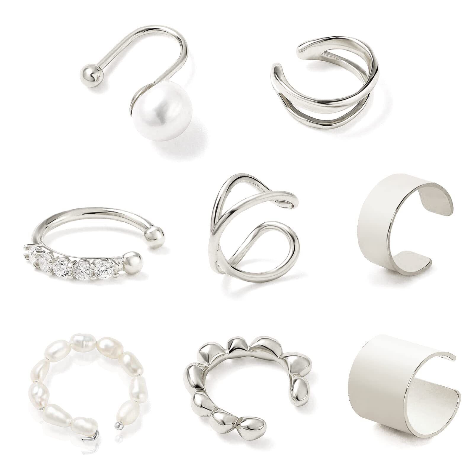 イヤーカフ 8個入り フェイクピアス ノンホールピアス レディース イヤリング 軟骨 挟む 重ね付け ピアス穴不要 アレルギー対応 おしゃれ 誕生日 母の日 結婚式 記念日 合金製 シルバー