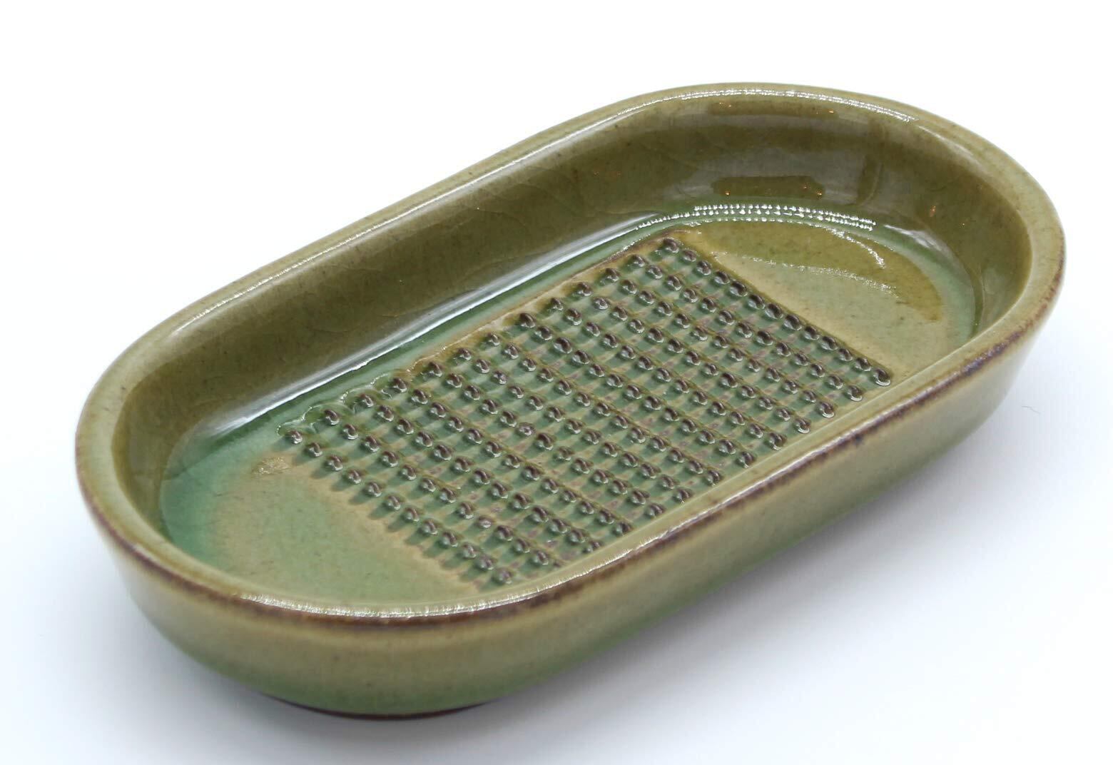 おろし部分に特徴があり、生姜の繊維が切れにくく、ふわっとおろす事が出来る製品です。不思議と汁がほとんど出ないので、苦みやえぐみが無く生姜が美味しいです。小皿替わりにも使え、そのままテーブルへ。食器洗浄機にも対応しています。陶器ですが原料に磁器土をブレンドする事でかなり強度があり、おろし部分も欠けにくい仕様です。サイズ:長さ12.7cm×幅7cm×高さ2cm 材質:陶器 生産国:日本(萬古焼) 食器洗浄機・電子レンジ対応