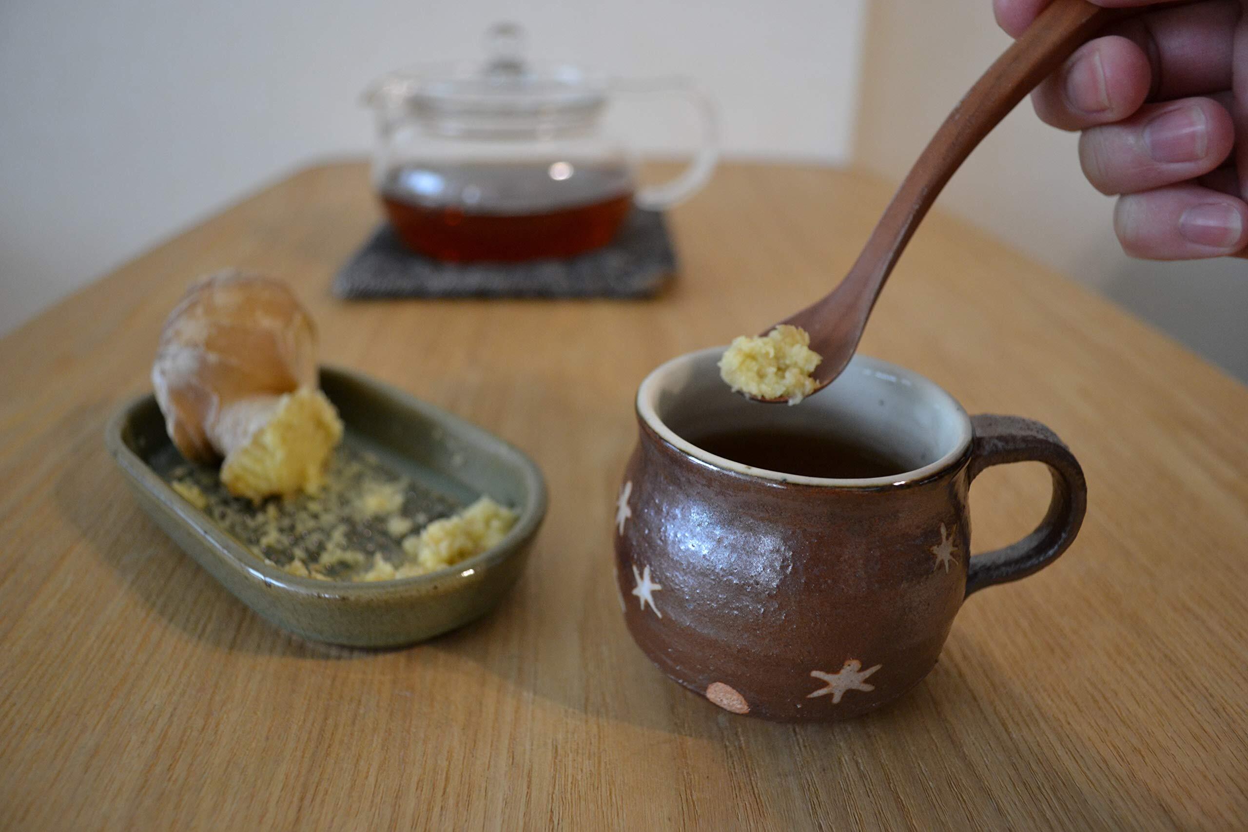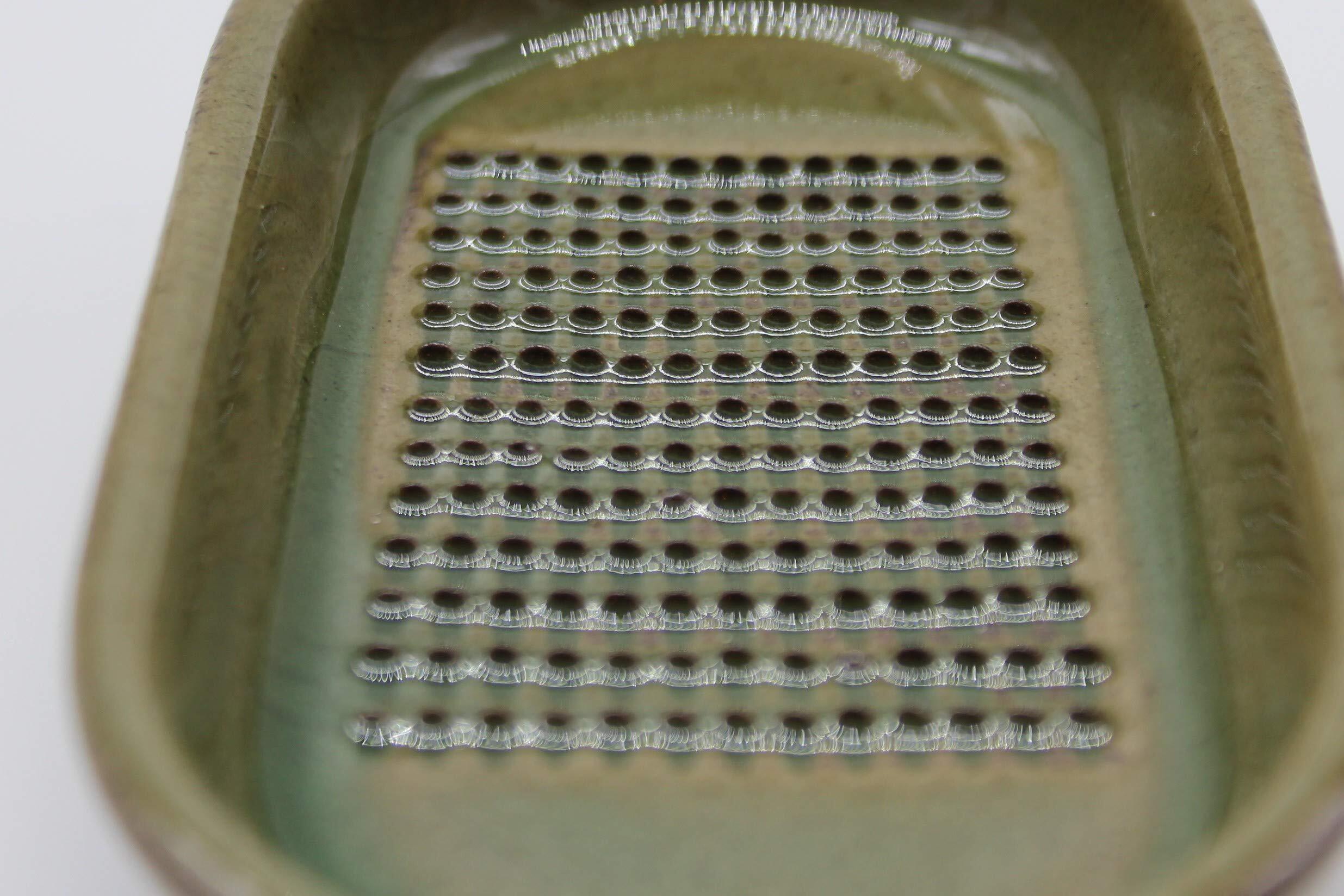 おろし部分に特徴があり、生姜の繊維が切れにくく、ふわっとおろす事が出来る製品です。不思議と汁がほとんど出ないので、苦みやえぐみが無く生姜が美味しいです。小皿替わりにも使え、そのままテーブルへ。陶器ですが原料に磁器土をブレンドする事でかなり強度があり、おろし部分も欠けにくい仕様です。食器洗浄機にも対応しています。