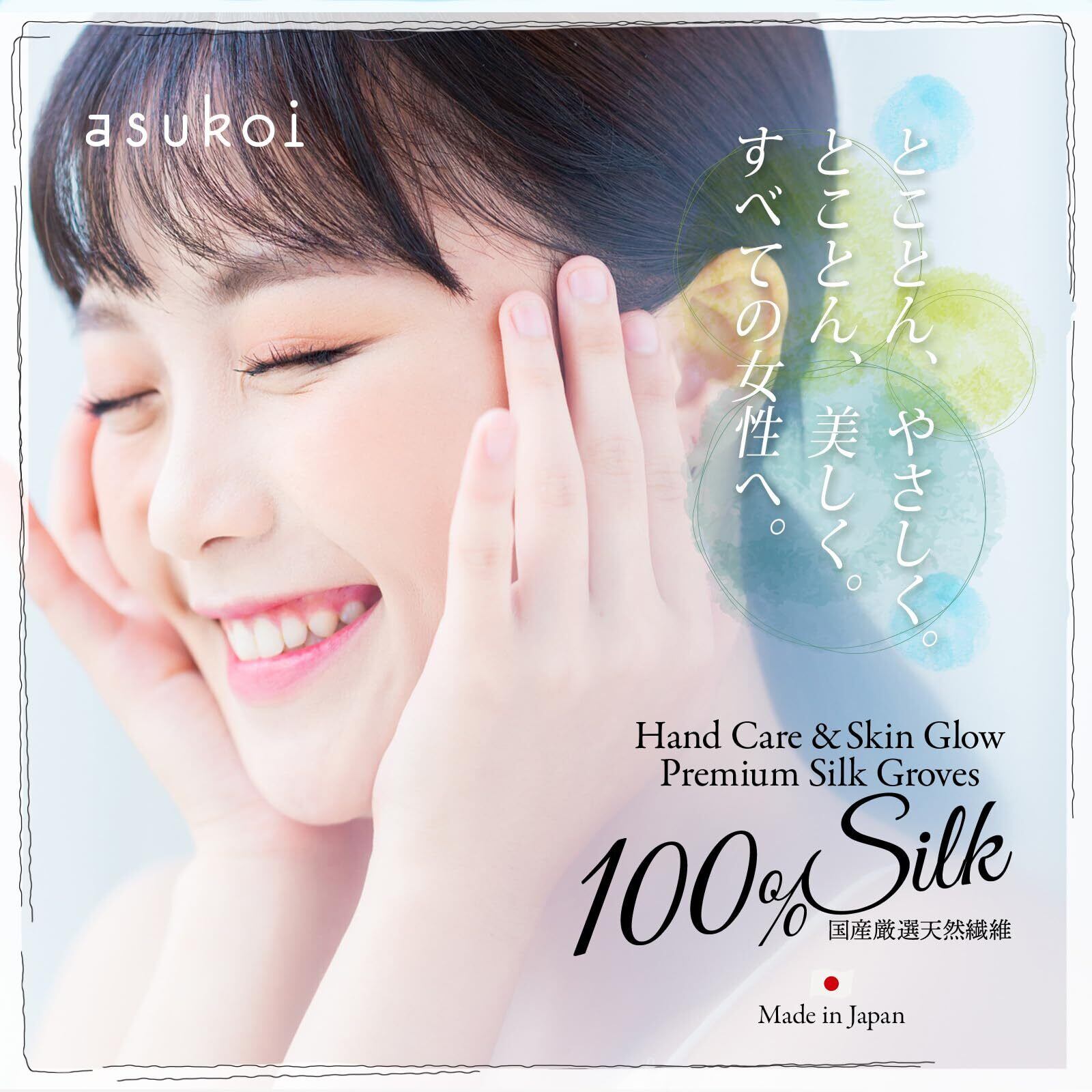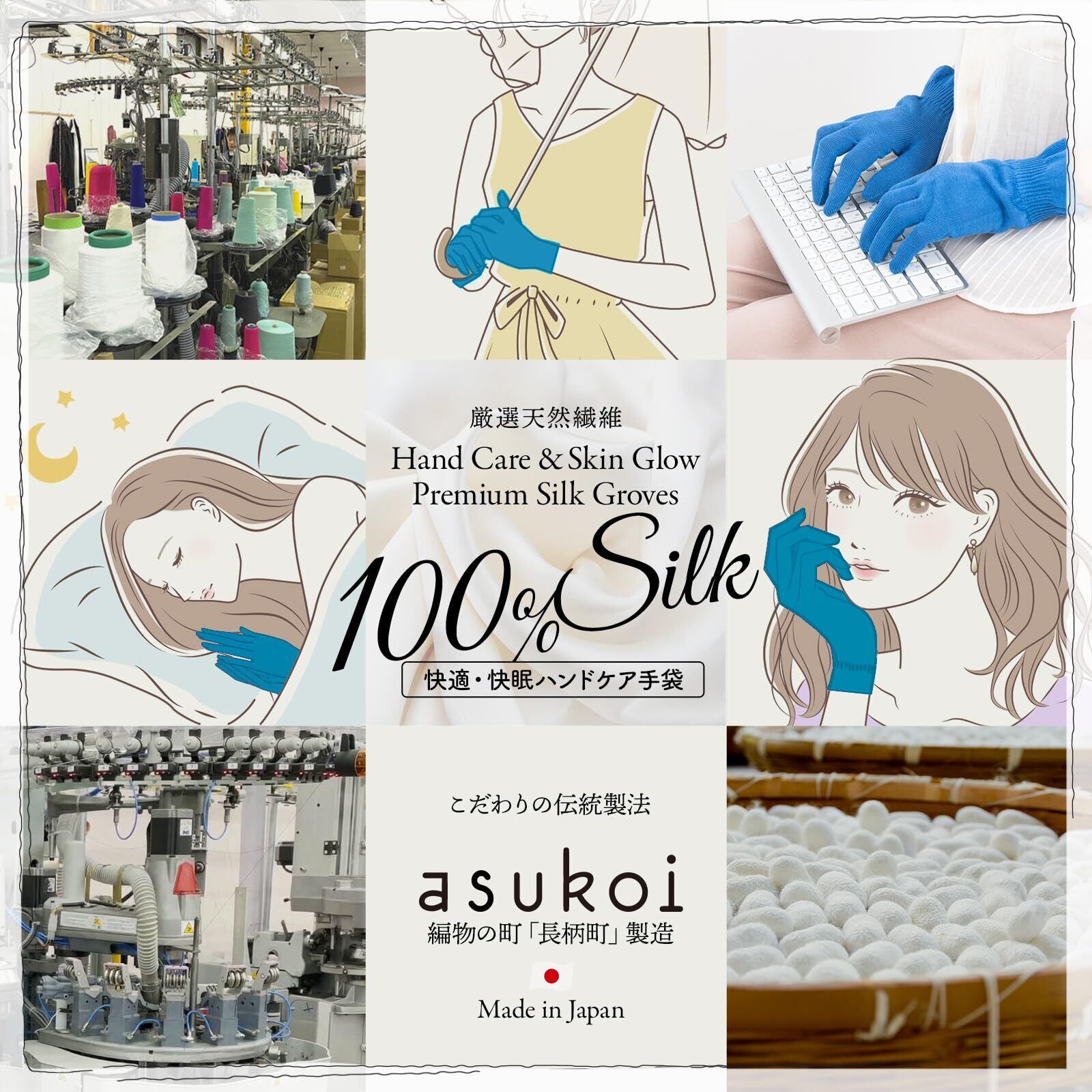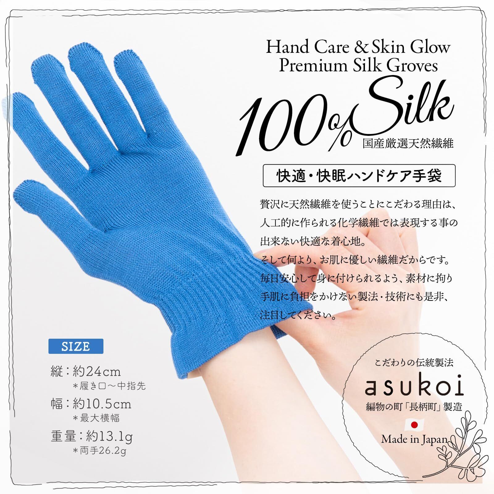ハンドケア手袋 シルク100% 「asukoi X Made In Japan」天然素材で作られた寝てる間に簡単ケア since 1934 テレビや新聞で紹介 ネイリストが企画した手を美しく見せたい方にオススメ