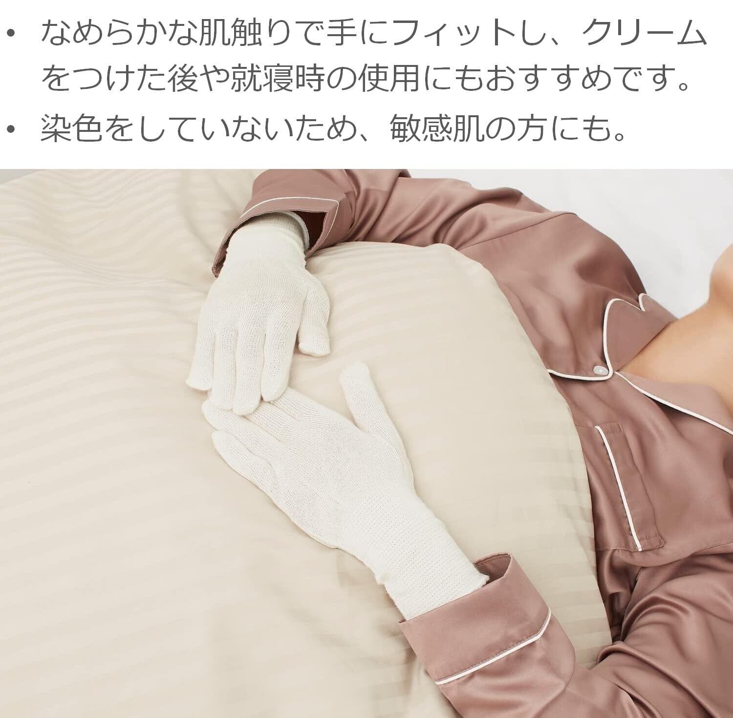 この製品は、ハンドクリームを塗った後、就寝時や下履きとして使用してください。必要に応じて洗濯してください。