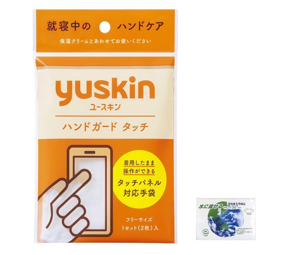 ユースキン ハンドガードタッチ 2枚入り + おまけ付き(ポケットティッシュ) フリーサイズ タッチパネル対応手袋 就寝中のハンドケア