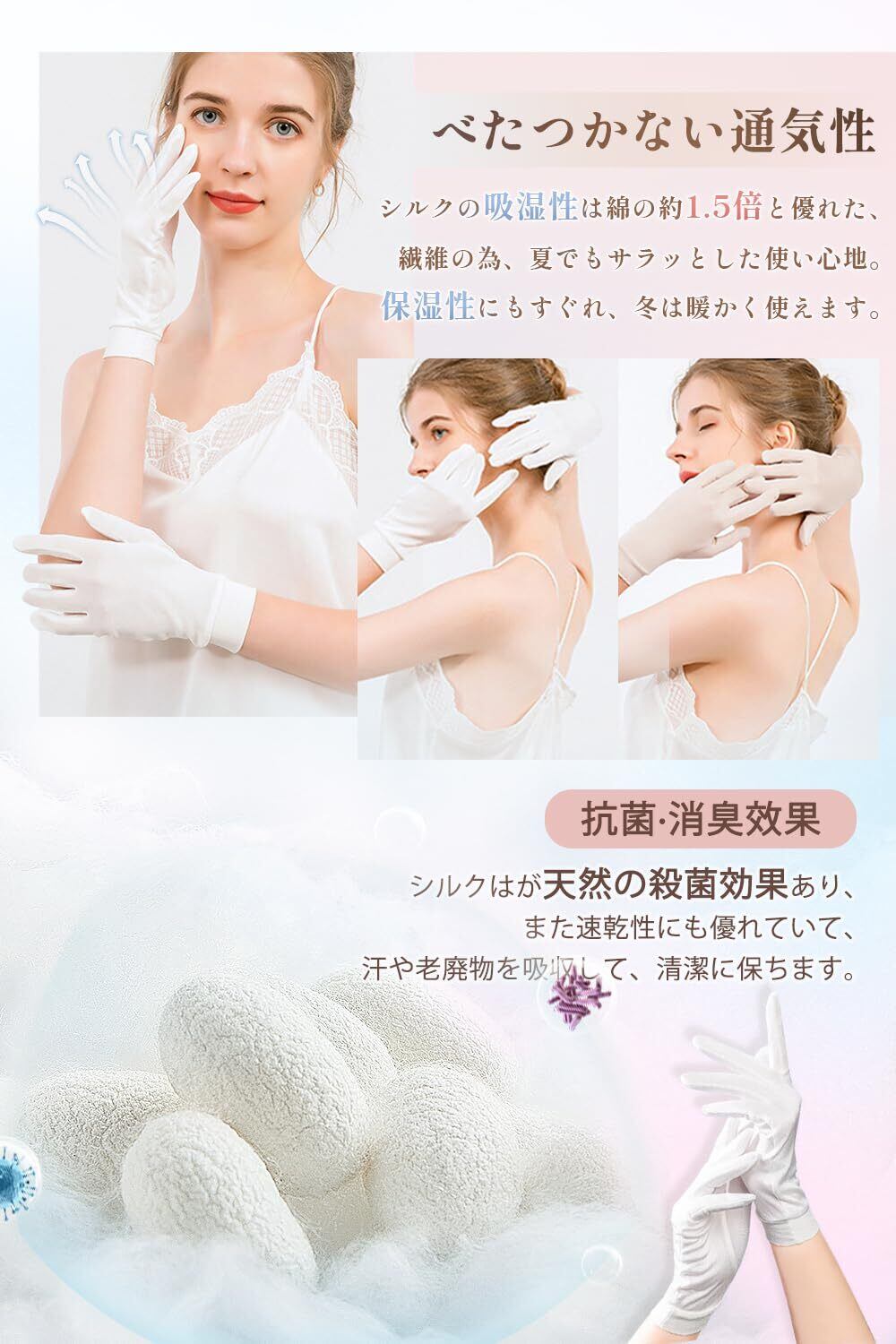 [Pawinpaw] シルク 手袋 uvカット おやすみ手袋 紫外線対策 天然シルク100% レディース グローブ【ハンドケアアドバイザー推薦・保湿・薄手】 通気 ナイトケア 日焼け止め 就寝用/自転車/通勤/運転