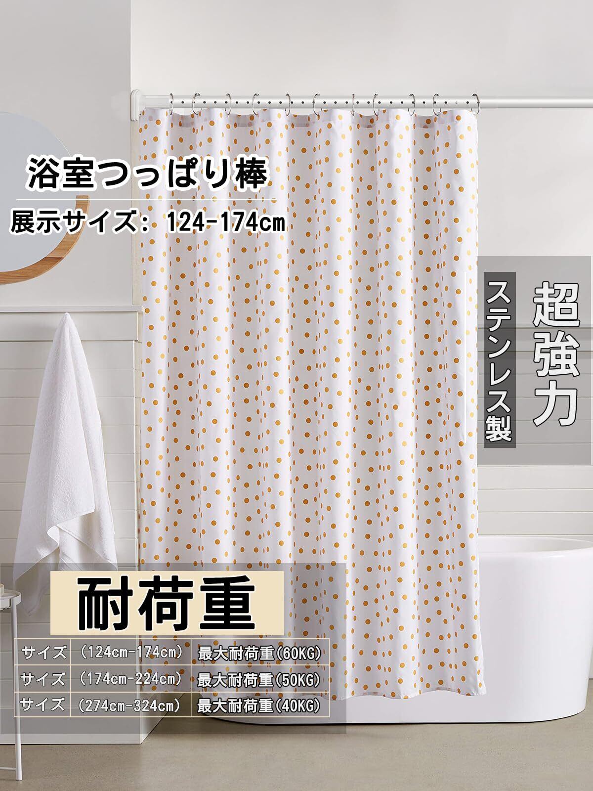 【超強力バネ】つっぱり棒 超強力突っ張り棒 カーテンリング付き・ツッパリ棒 : 長174~224cm 浴室強力つっぱり棒 ステンレス 2m以上 穴あけ不要 長さ調節可能 耐震頑丈設計 耐荷重40-50KG 白 ホワイト フレキシブルインテリア用・衣類掛け伸縮棒・クローゼット・室内収納・お風呂・シャワーカーテン・部屋洗濯布団干し (ホワイト, 174cm-224cm)