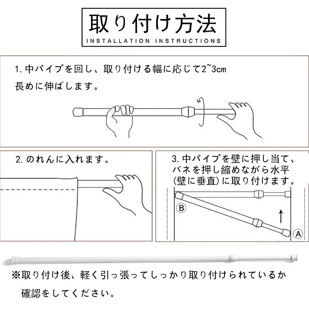 【使用場合】つっぱり棒、クローゼットロッド、浴室用タオル掛け、室内用カーテンロッド、シャワーカーテンロッド、布団干し、物干し竿、キッチン用品収納