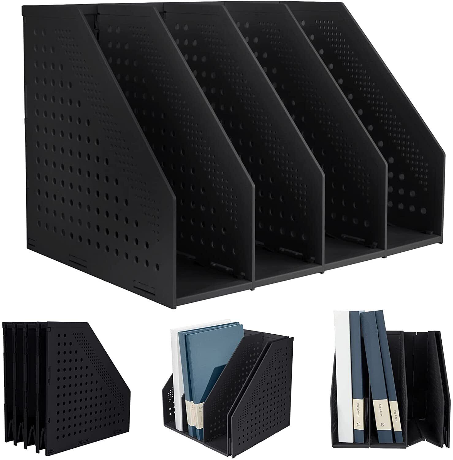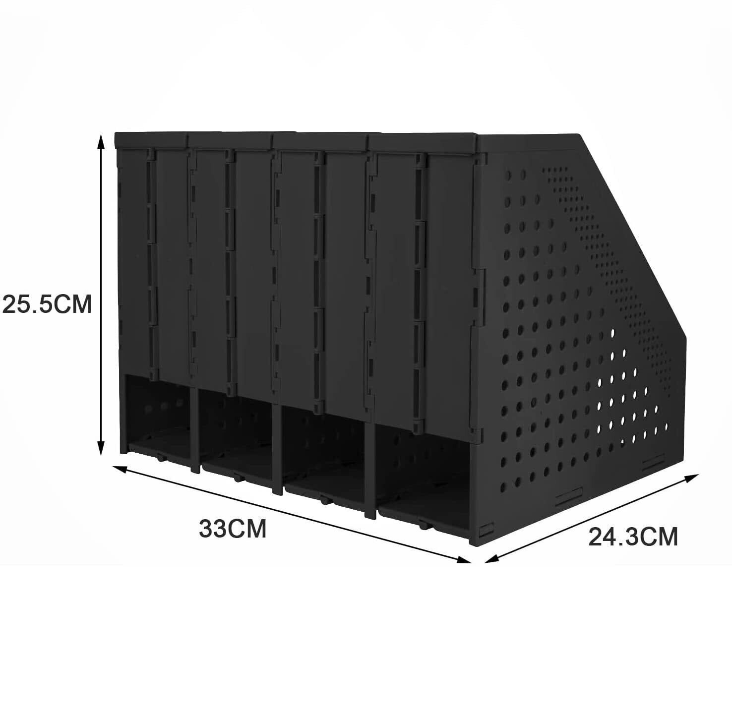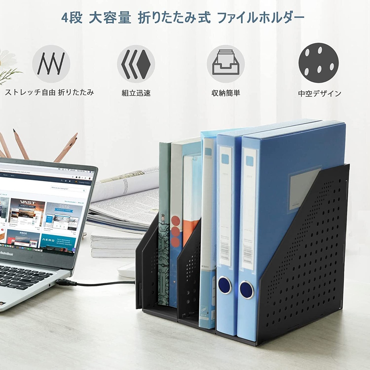 ファイルボックス 本立て 文具収納 事務用品 卓上棚 オフィス 卓上書類収納 折りたたみ式 3段 4段 (ダークグレー, 4段)