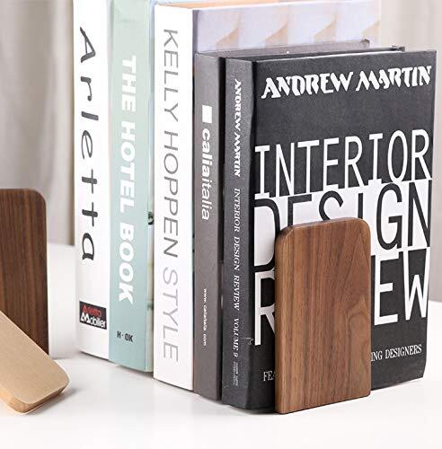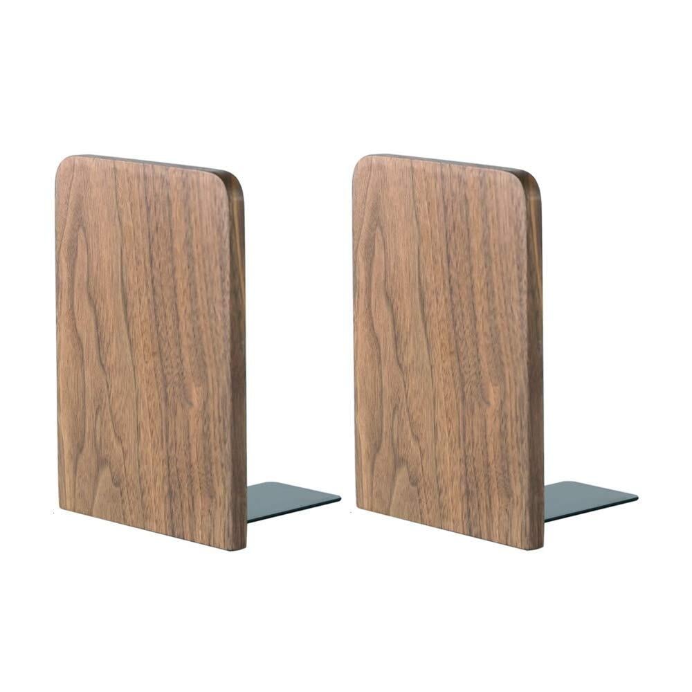 Muso Wood 木製 ブックエンド,8*13cm (1ペアパック) (ウォールナット)