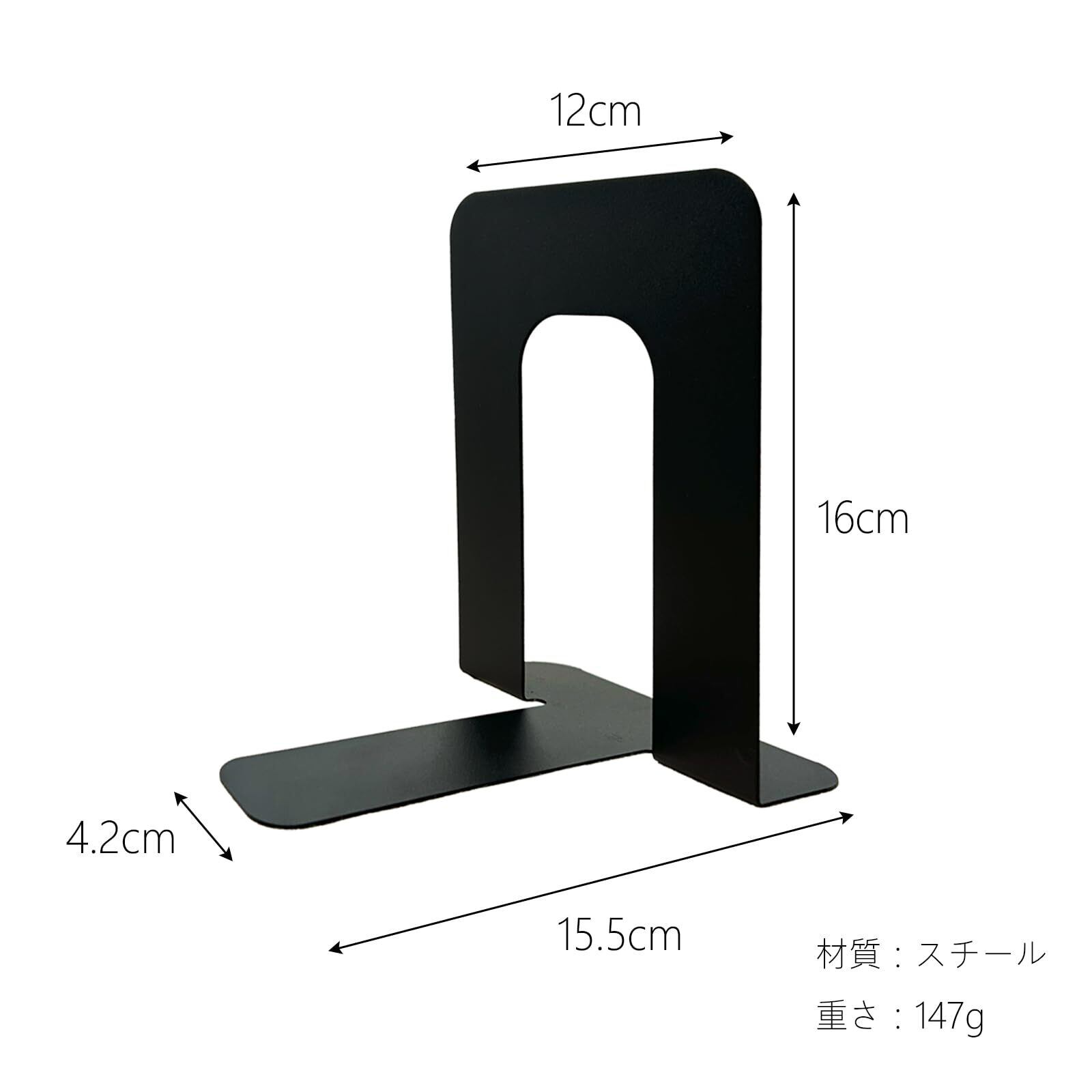 ブックエンド 4個セット 卓上 倒れない 金属製 滑り止め付 高さ16㎝ 中サイズ ブックスタンド 本立て T字 黒