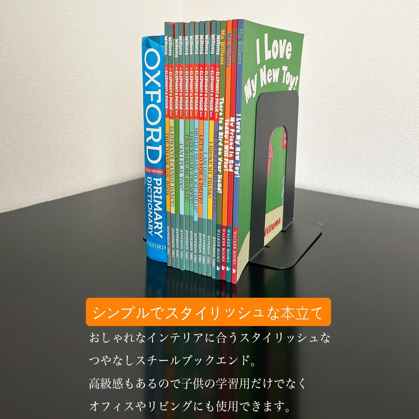 【シンプルでスタイリッシュな本立て】 おしゃれなインテリアに合うスタイリッシュなつやなしスチールブックエンド。高級感もあるので子供の学習用だけでなくオフィスやリビングにも使用できます。