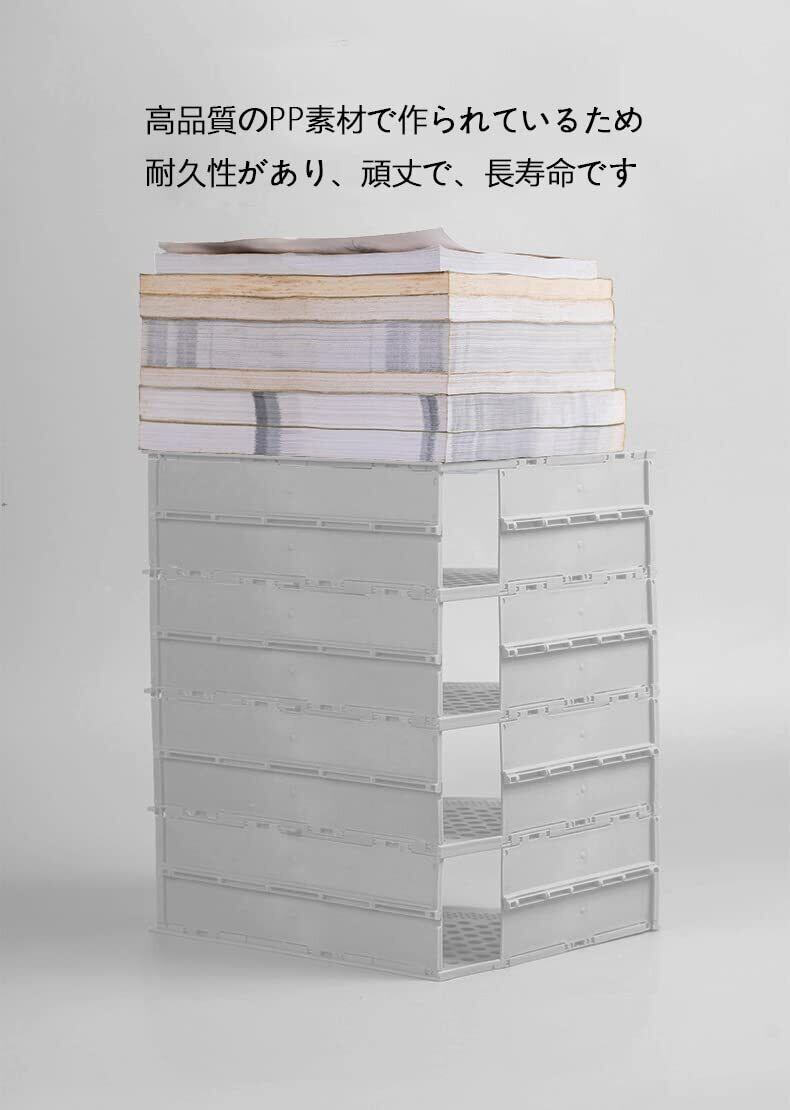 ファイルボックス 本立て 文具収納 事務用品 卓上棚 オフィス 卓上書類収納 折りたたみ式 3段 4段 (オフホワイト, 4段)