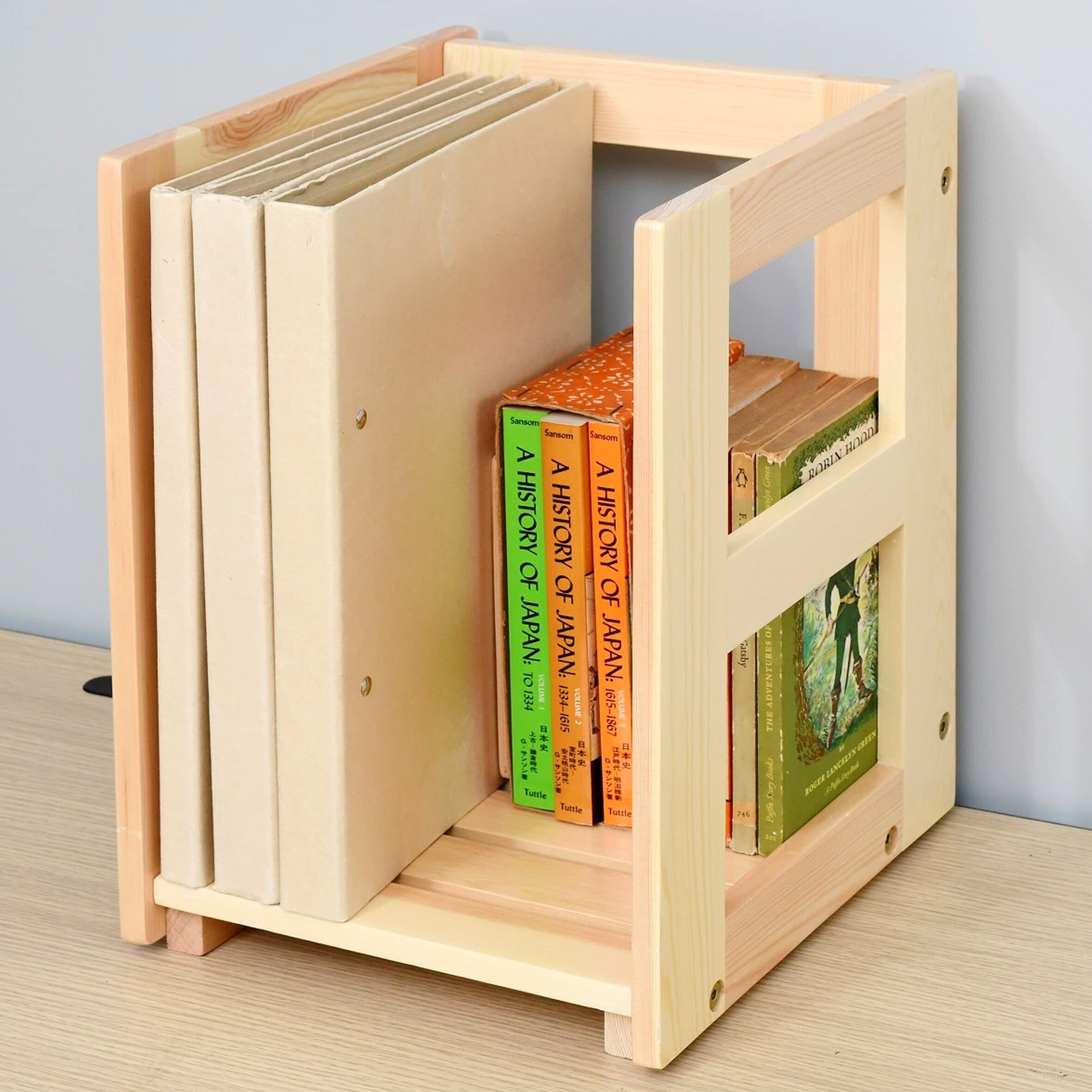 山善(YAMAZEN) ブックスタンド 本立て A4ファイル対応 仕切り (可動式) スタッキングできる 木製 卓上 本棚 幅24.5×奥行27.5×高さ36cm 組立品 ナチュラル SSB-2530(NA) テレワーク