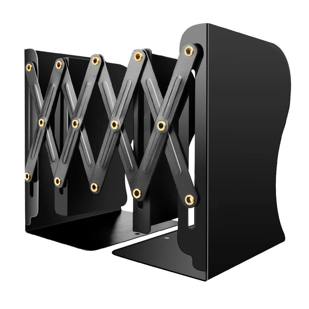 ブックエンド 伸縮 本立て 金属製 ブックスタンド 倒れない スライド式 収納 デスク整理 卓上本棚 卓上 本立て おしゃれ 仕切りスタンド (ブラック)