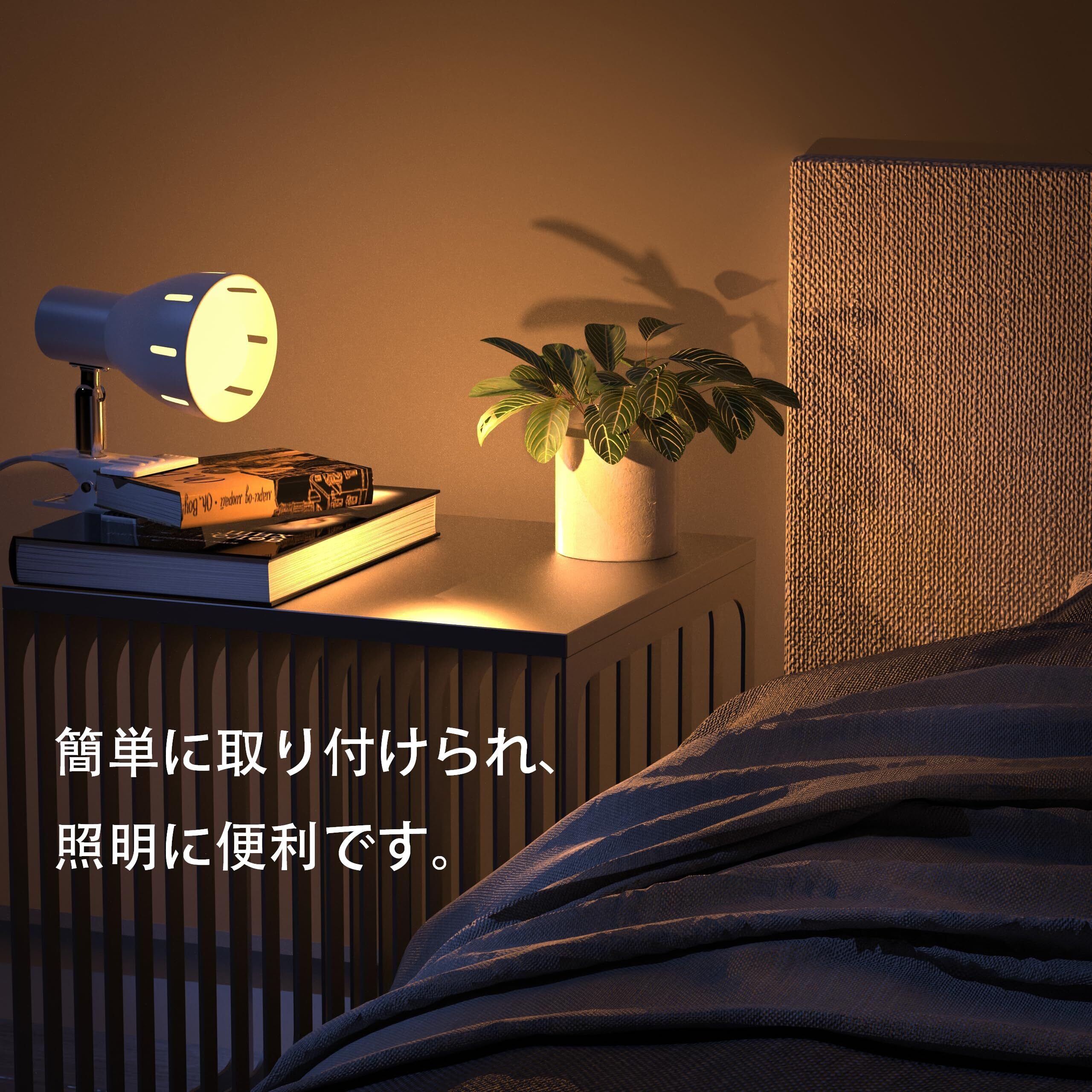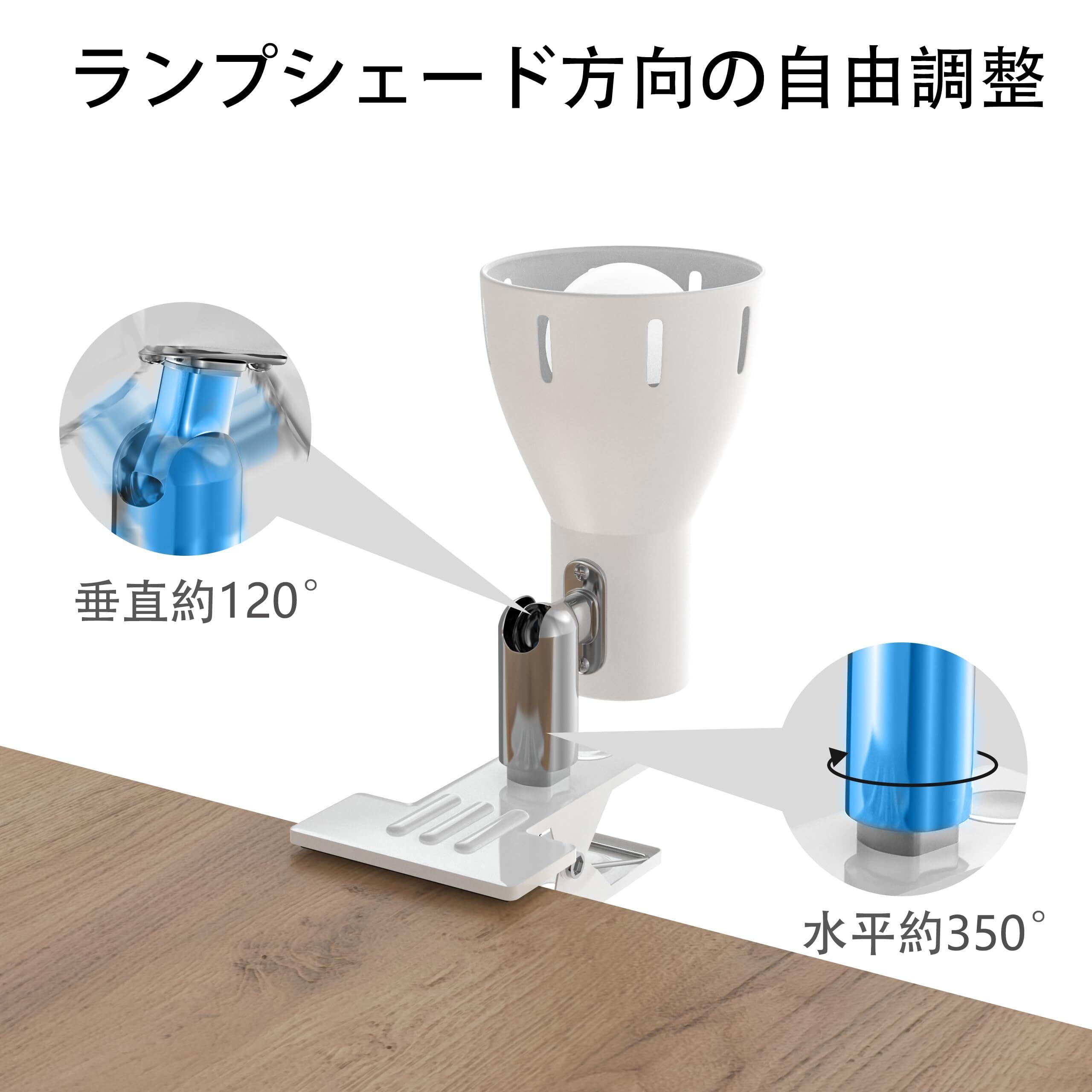 【簡単取り付け使用】配線不要で、クリップをテーブル、物置棚、ブラケットなどに挟み込むだけで、挟むだけで取り付けが完了します。パイプ部分は上下左右に調節でき、クリップ設置方向との組み合わせで照射角度を固定することができる。