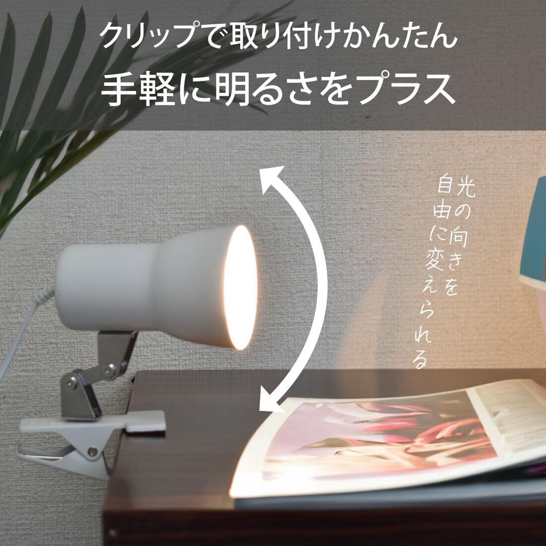 【 特 長 】● 電球はお好みの光源色でご使用できます● 口金E17、白熱電球40W以下、LED電球8W以下の電球に対応● 中間スイッチ付き● 光の向きが自由に変えられます● 強力クリップで簡単に固定できます● 本体カラーはホワイト【 仕 様 】■ スイッチ:中間ON/OFF■ 定格電圧:AC100V 50/60Hz■ 消費電力:40W MAX■ 口金形状:E17■ 材質:スチール■ クリップはさみ幅:10~20mm■ 電源コード長さ:約1.8m■ 質量:約245g■ 使用電球(別売):白熱電球…40W以下、LED電球…8W以下、全長…70mm以下、最大径…35mm以下、質量…80g以下の電球をご使用ください