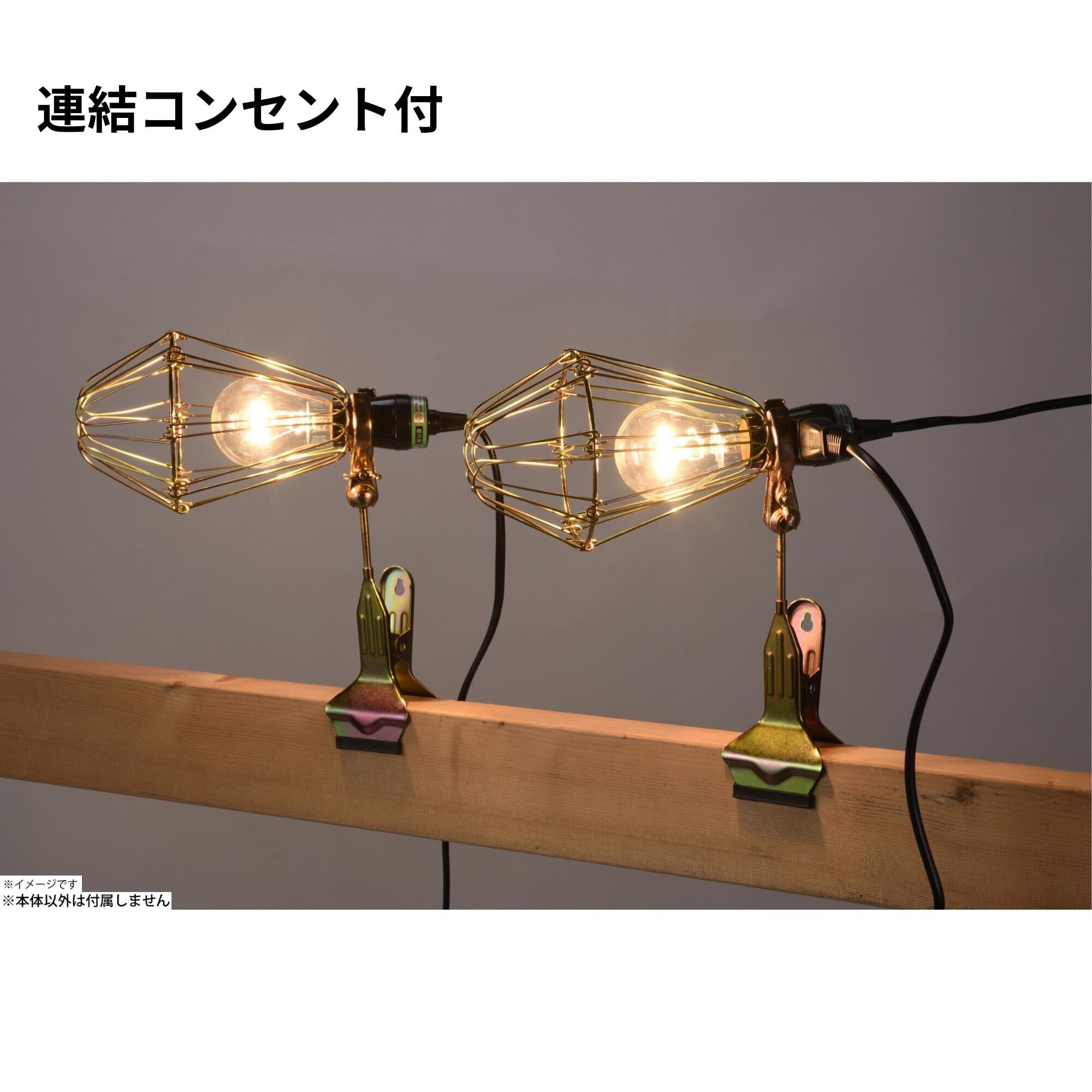 口金サイズ:E26、コード長:約5m、クリップ能力(最大):パイプφ48mm/角材 厚さ40mm